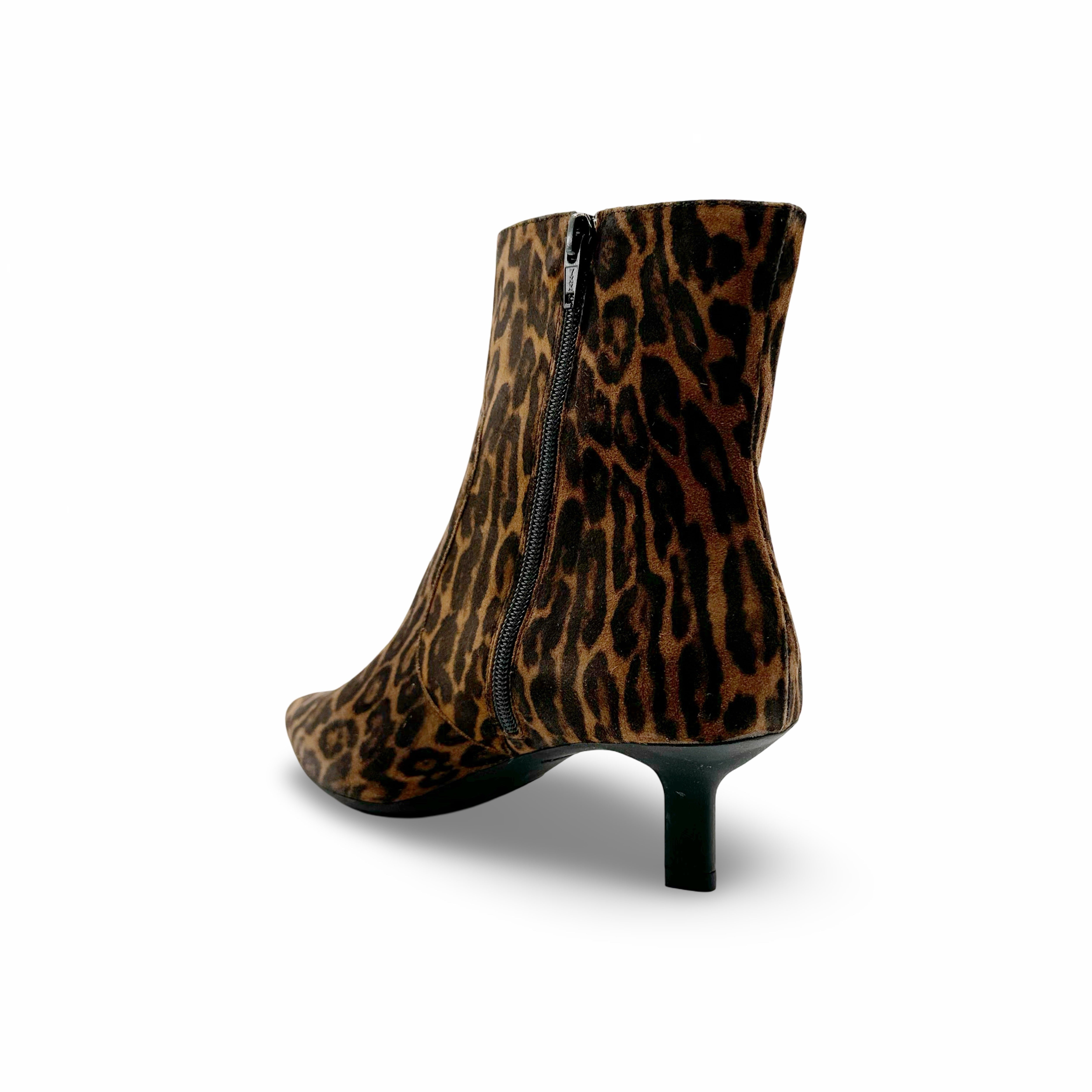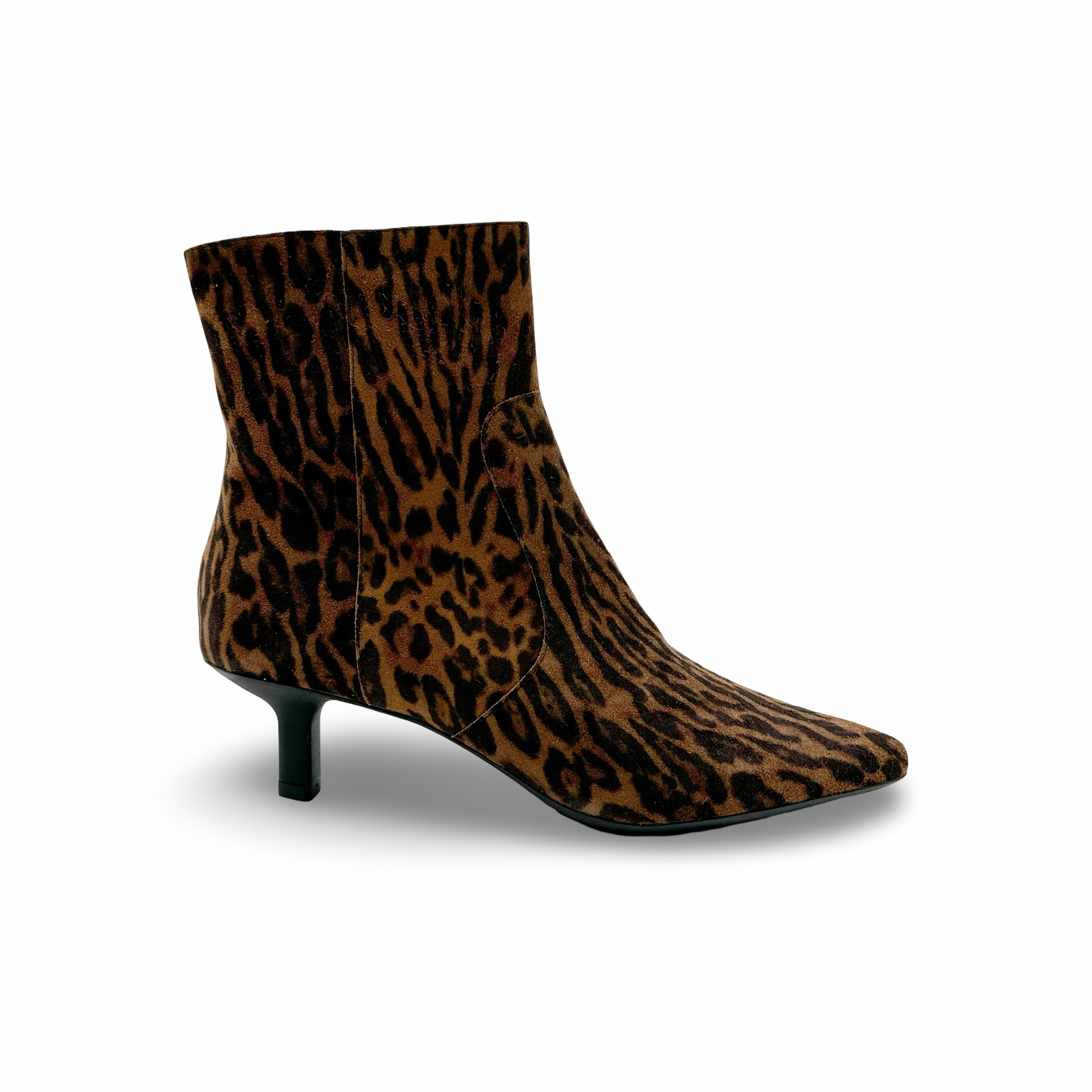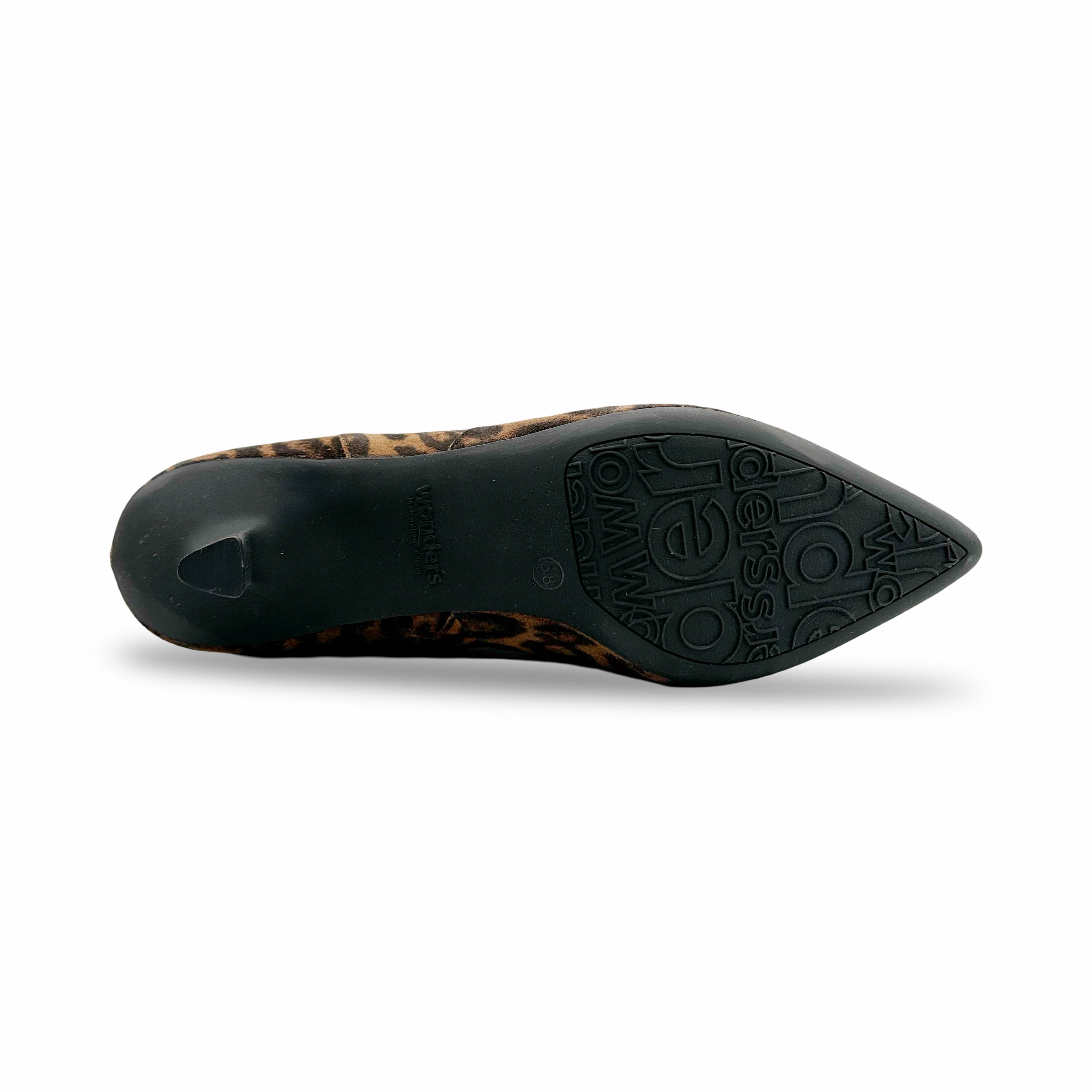 Classic ankle boot made of smooth animal print suede. A classic and timeless design with a pointed toe. This model features our new block sole with a kitten heel, made from flexible TPU for added comfort. Combined with the MemoryGel insole, it ensures exceptional comfort with every step. #madewithloveinSpain Wonders supports responsible manufacturing through LEATHER WORKING GROUP.