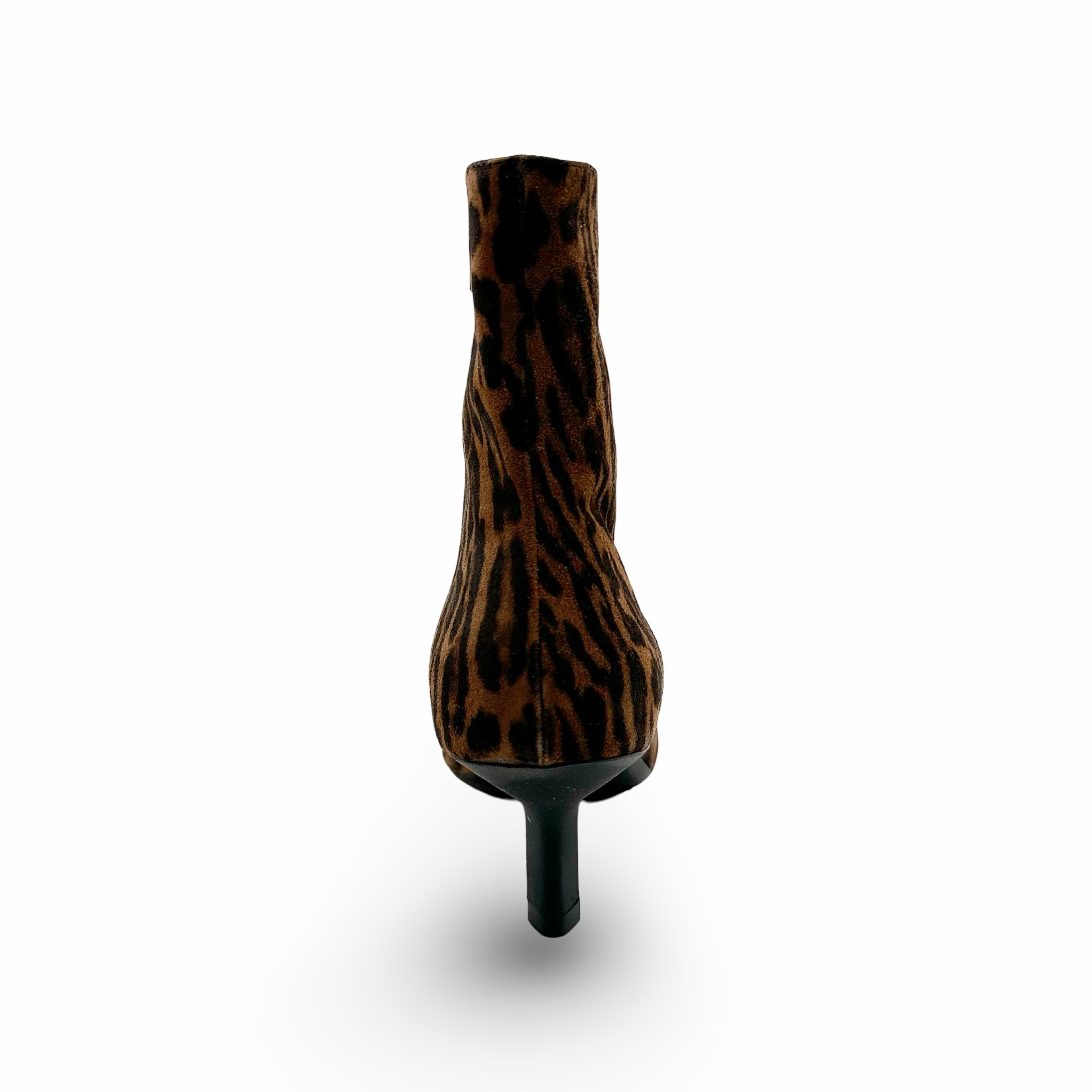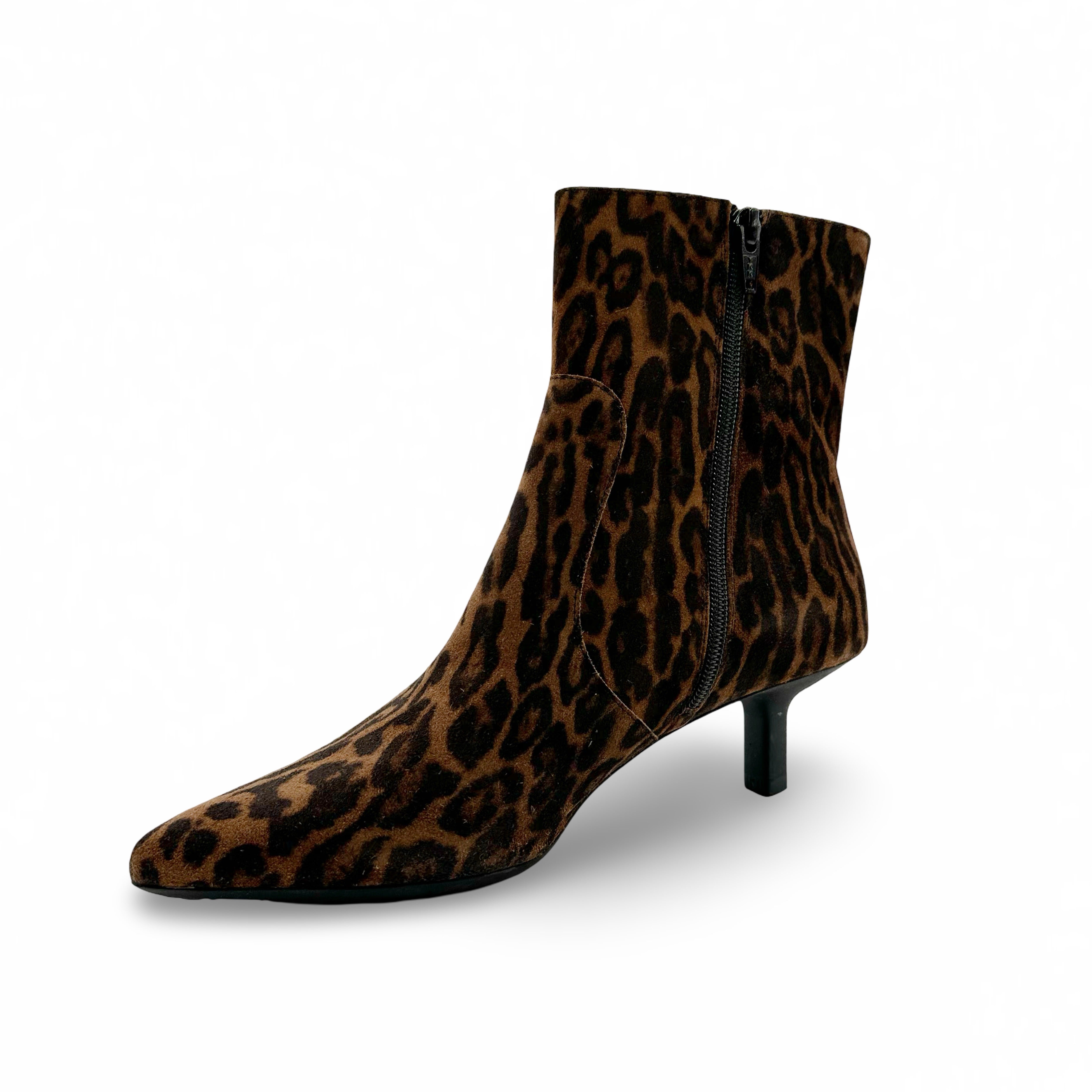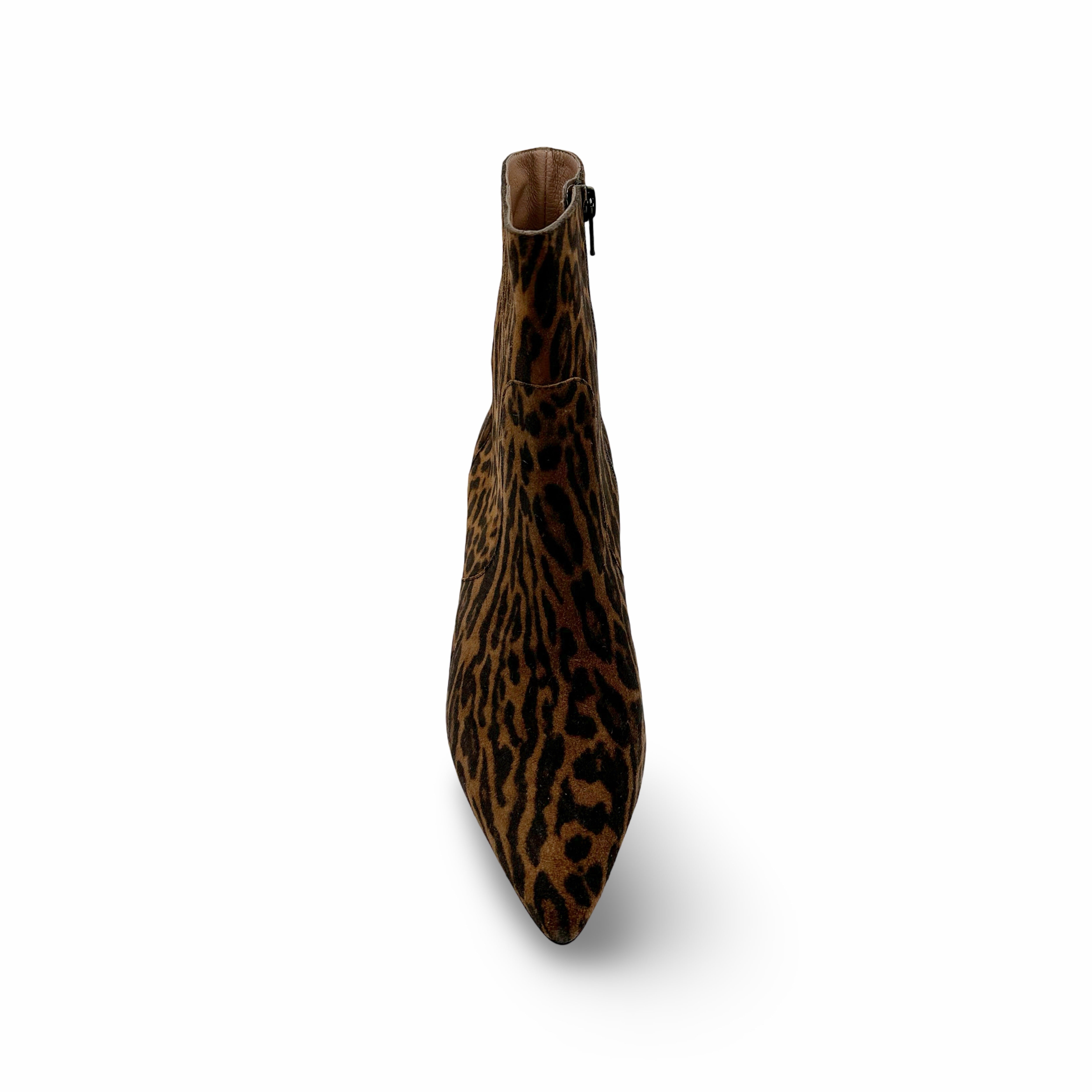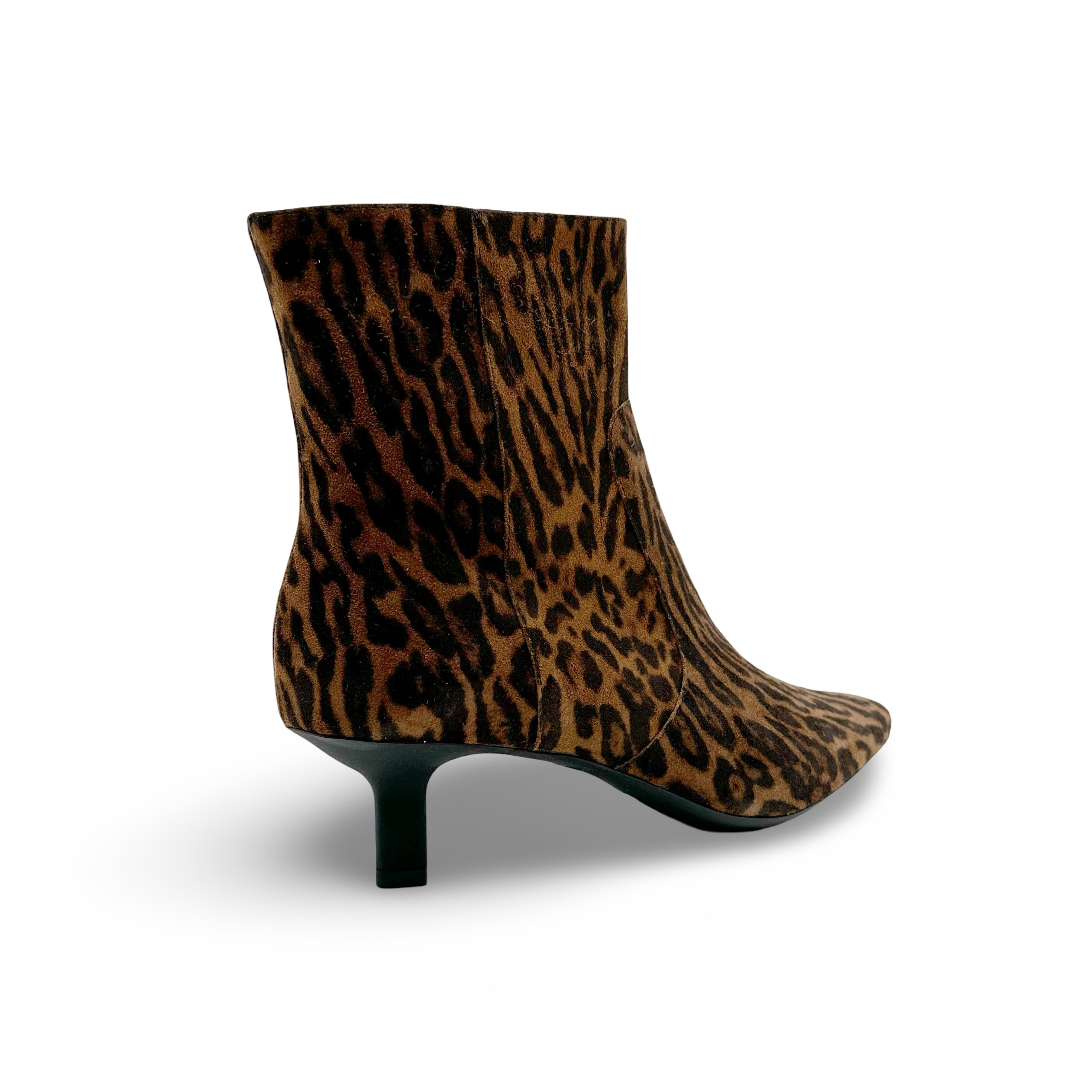 Classic ankle boot made of smooth animal print suede. A classic and timeless design with a pointed toe. This model features our new block sole with a kitten heel, made from flexible TPU for added comfort. Combined with the MemoryGel insole, it ensures exceptional comfort with every step. #madewithloveinSpain Wonders supports responsible manufacturing through LEATHER WORKING GROUP.