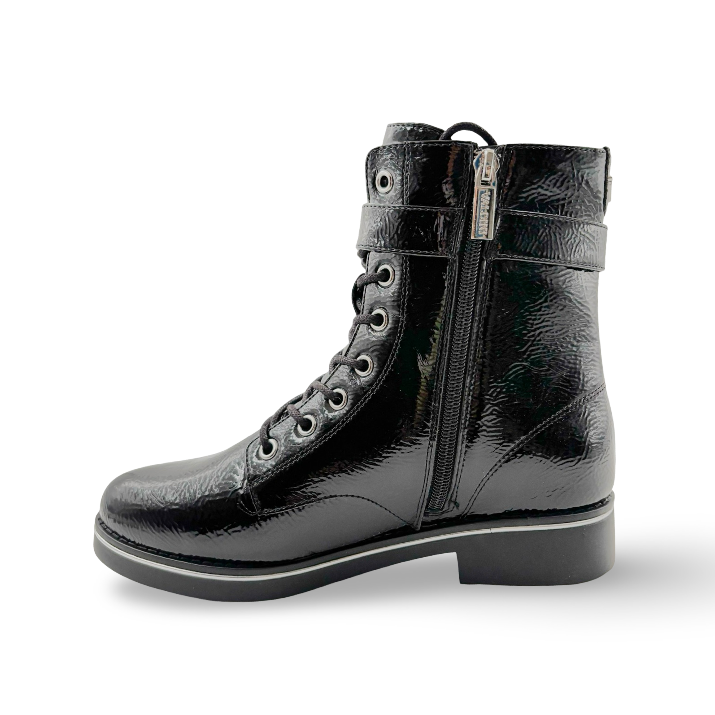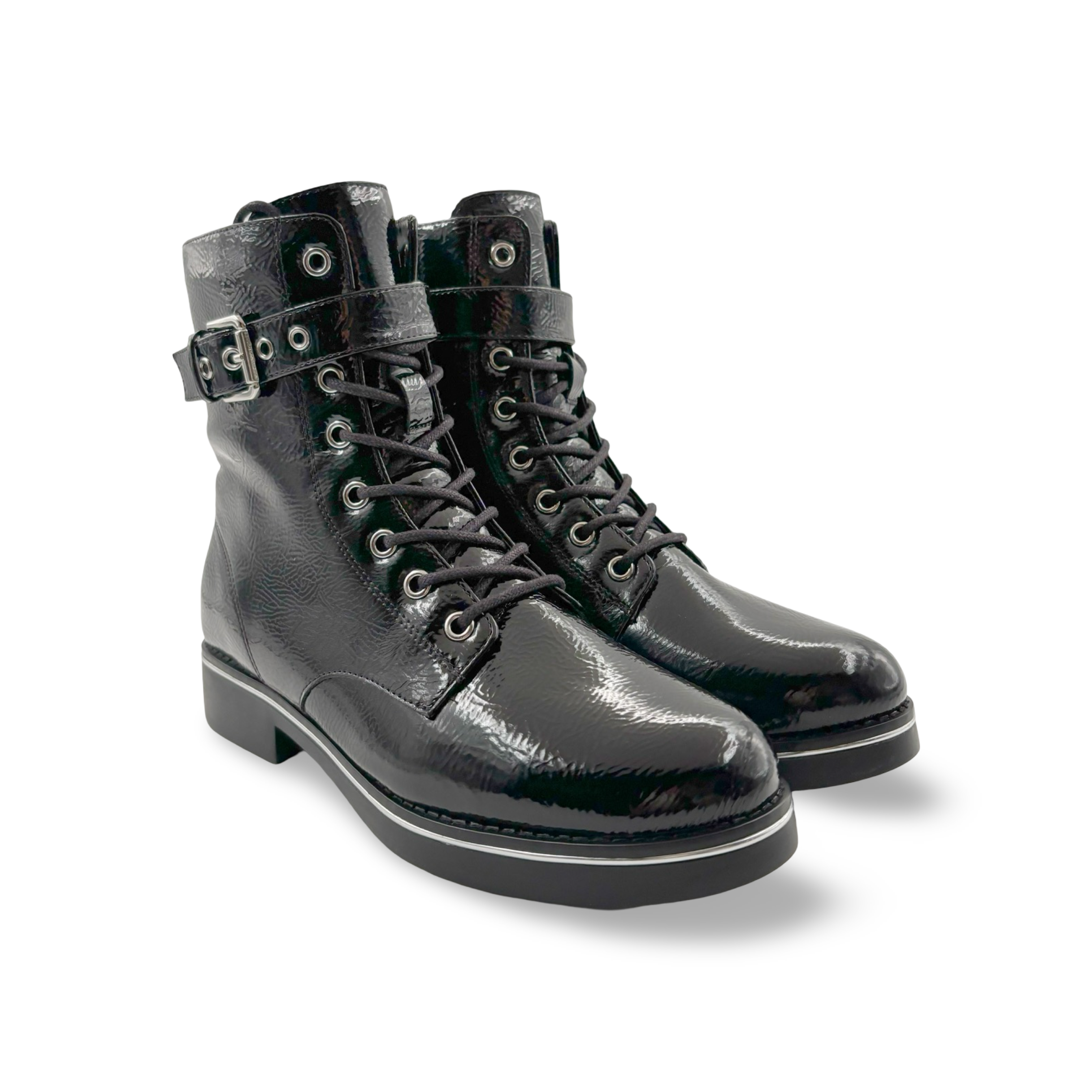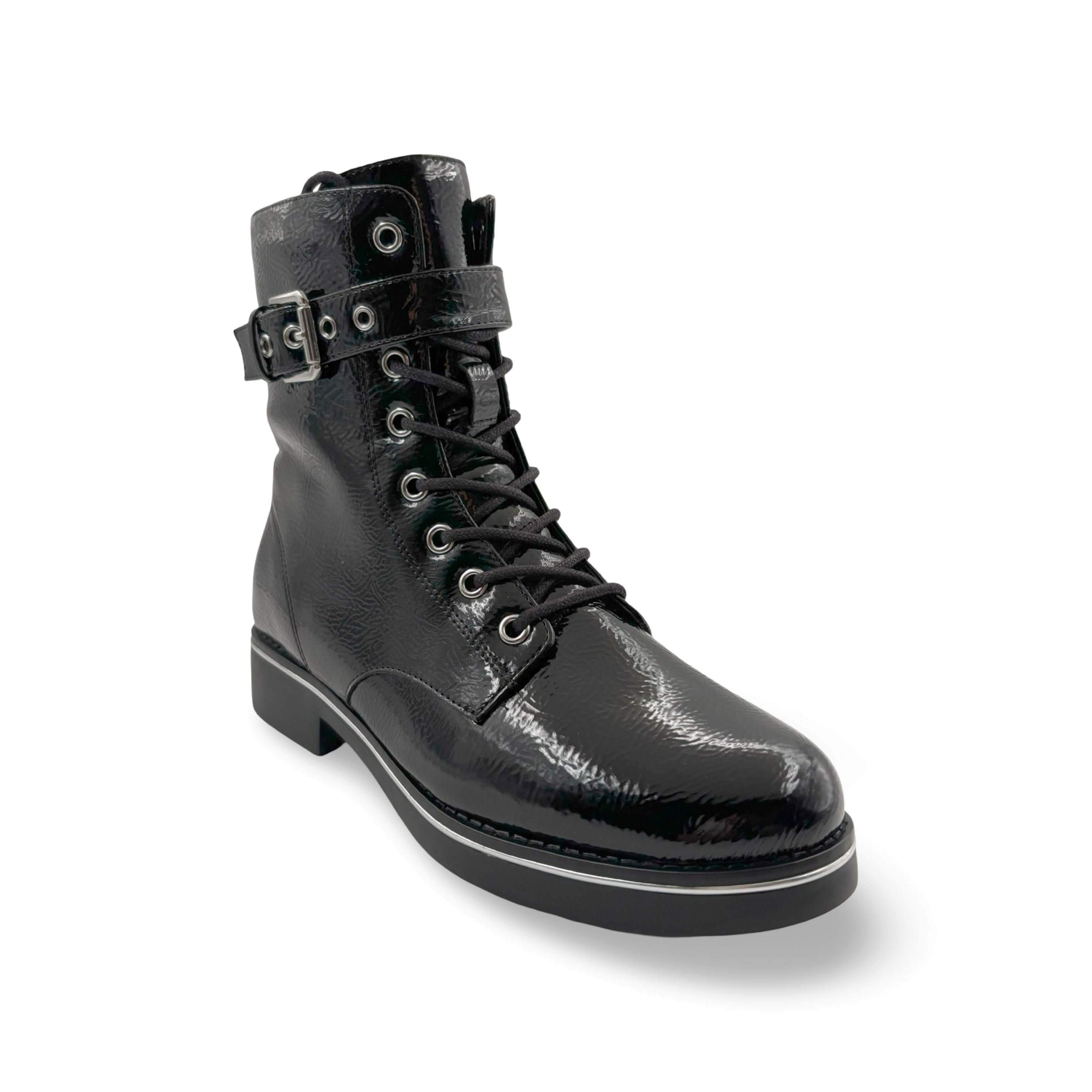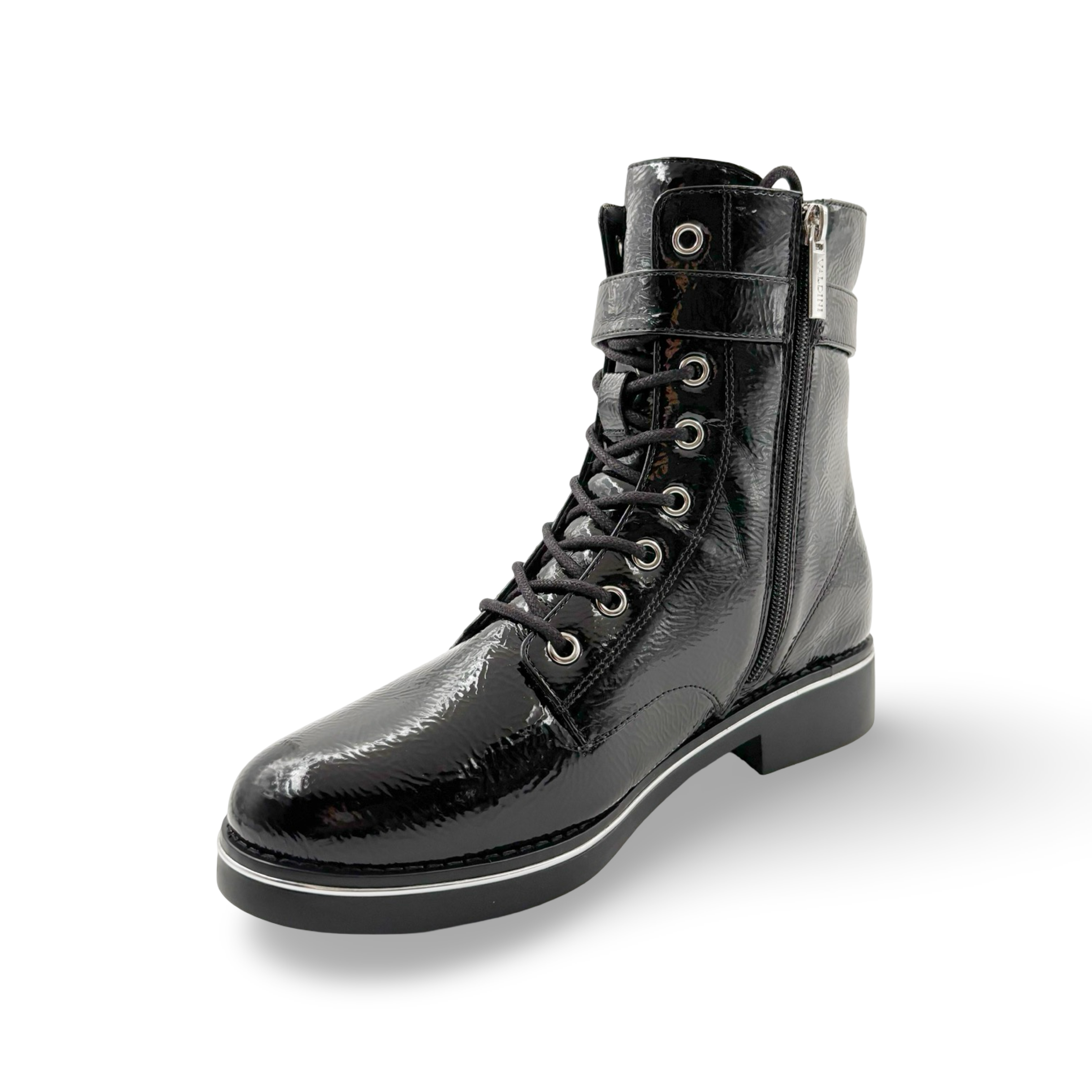Material: leather / crinkle patent leather / stretch fabricInsole: cushionedOutsole: rubberLining: microfiberSide zipWaterproofStain resistant