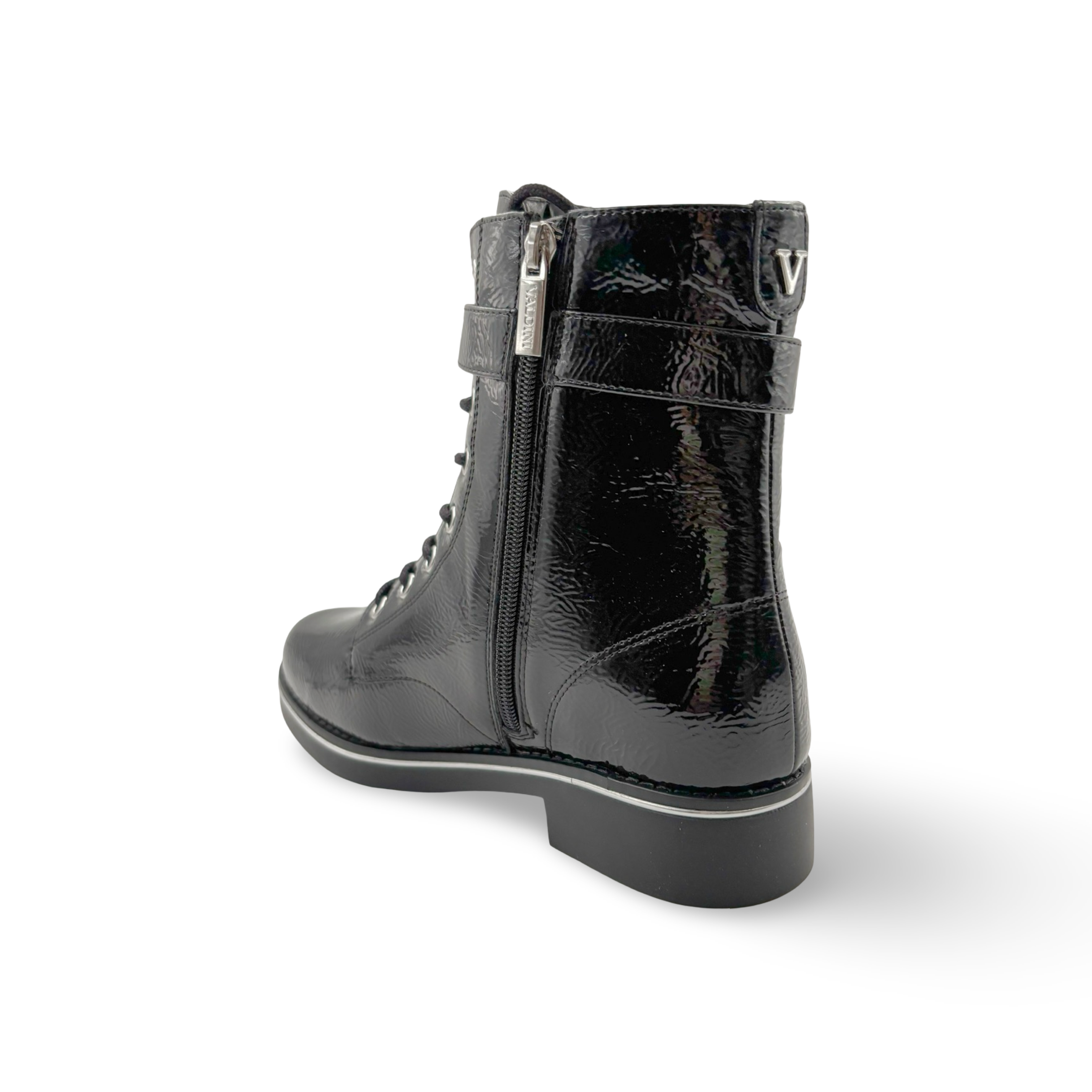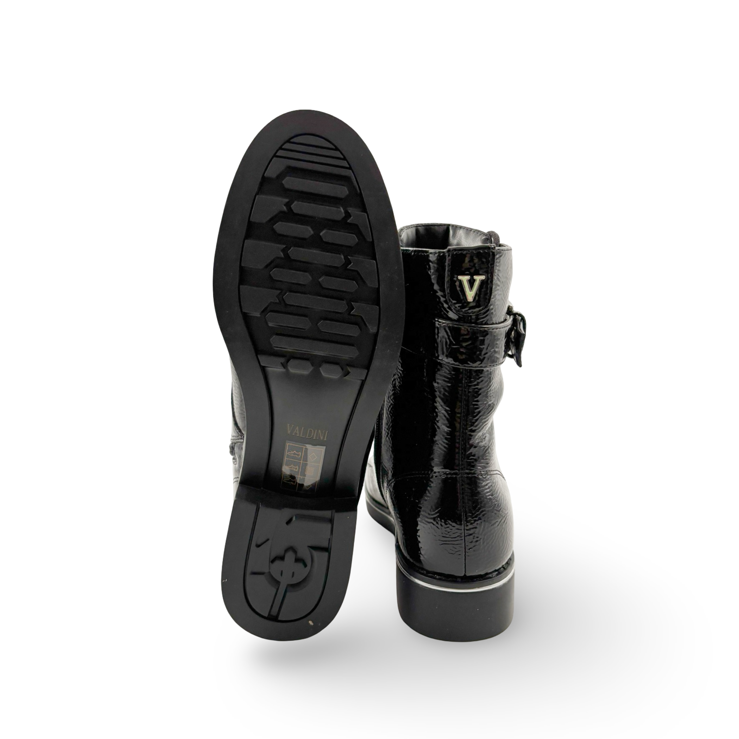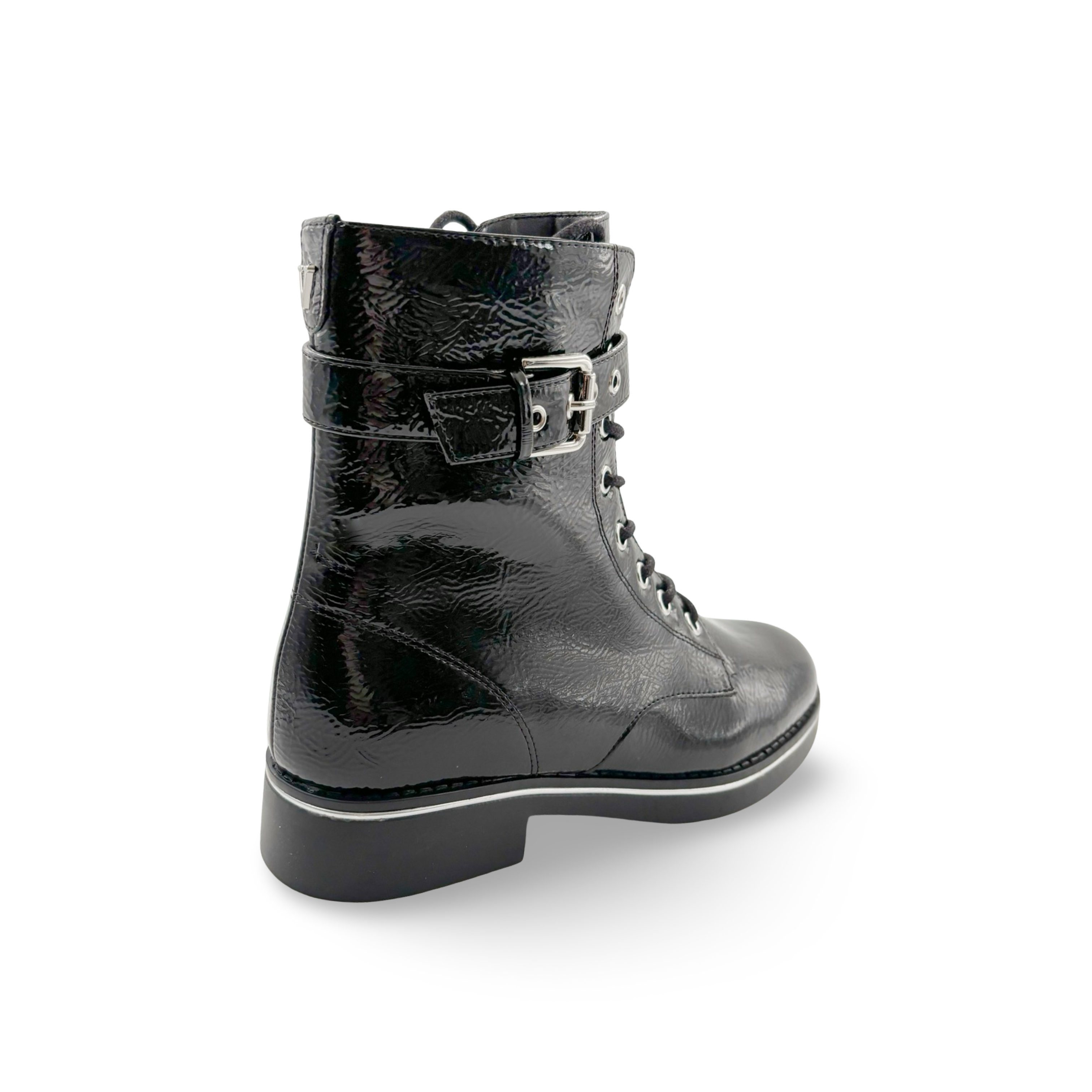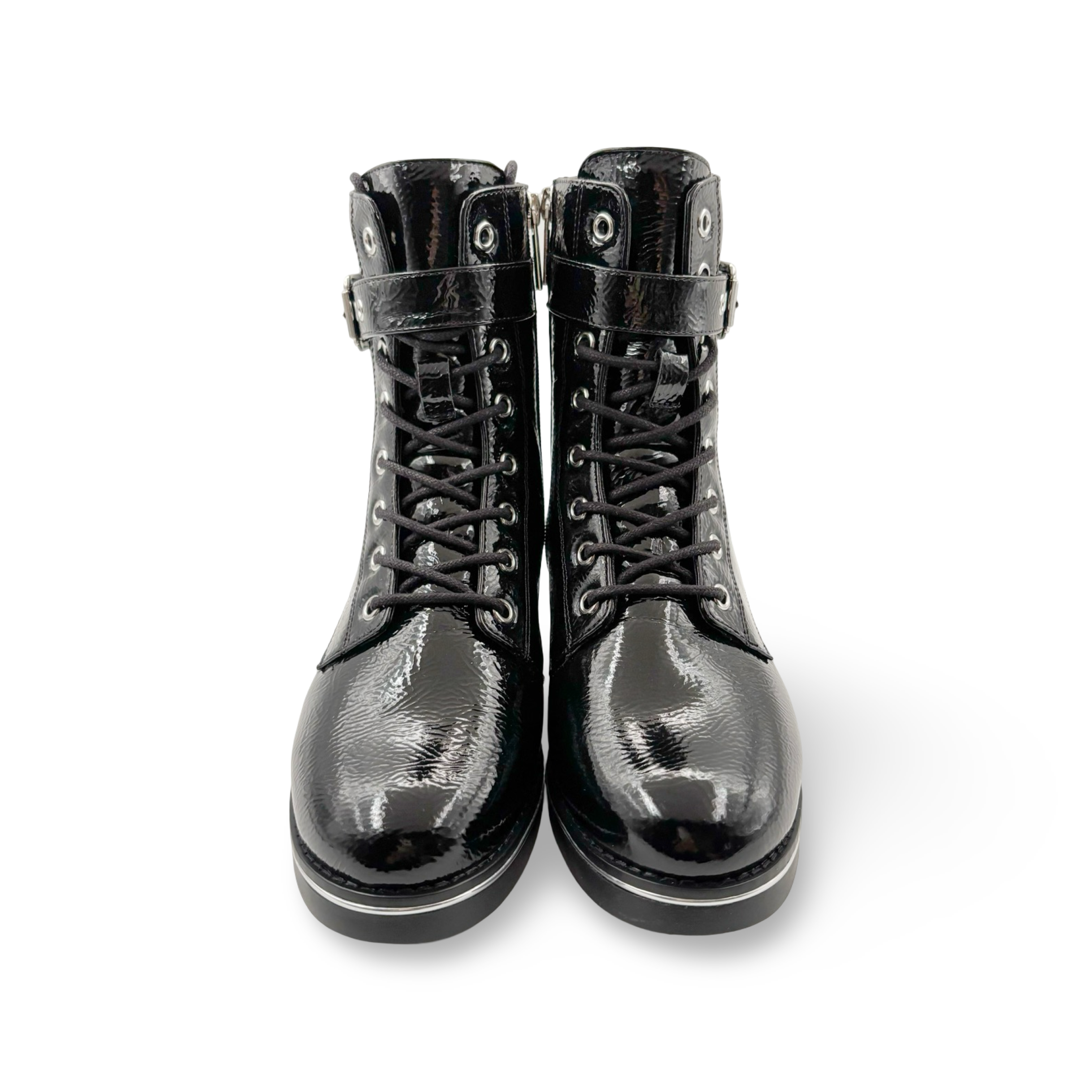 Material: leather / crinkle patent leather / stretch fabricInsole: cushionedOutsole: rubberLining: microfiberSide zipWaterproofStain resistant