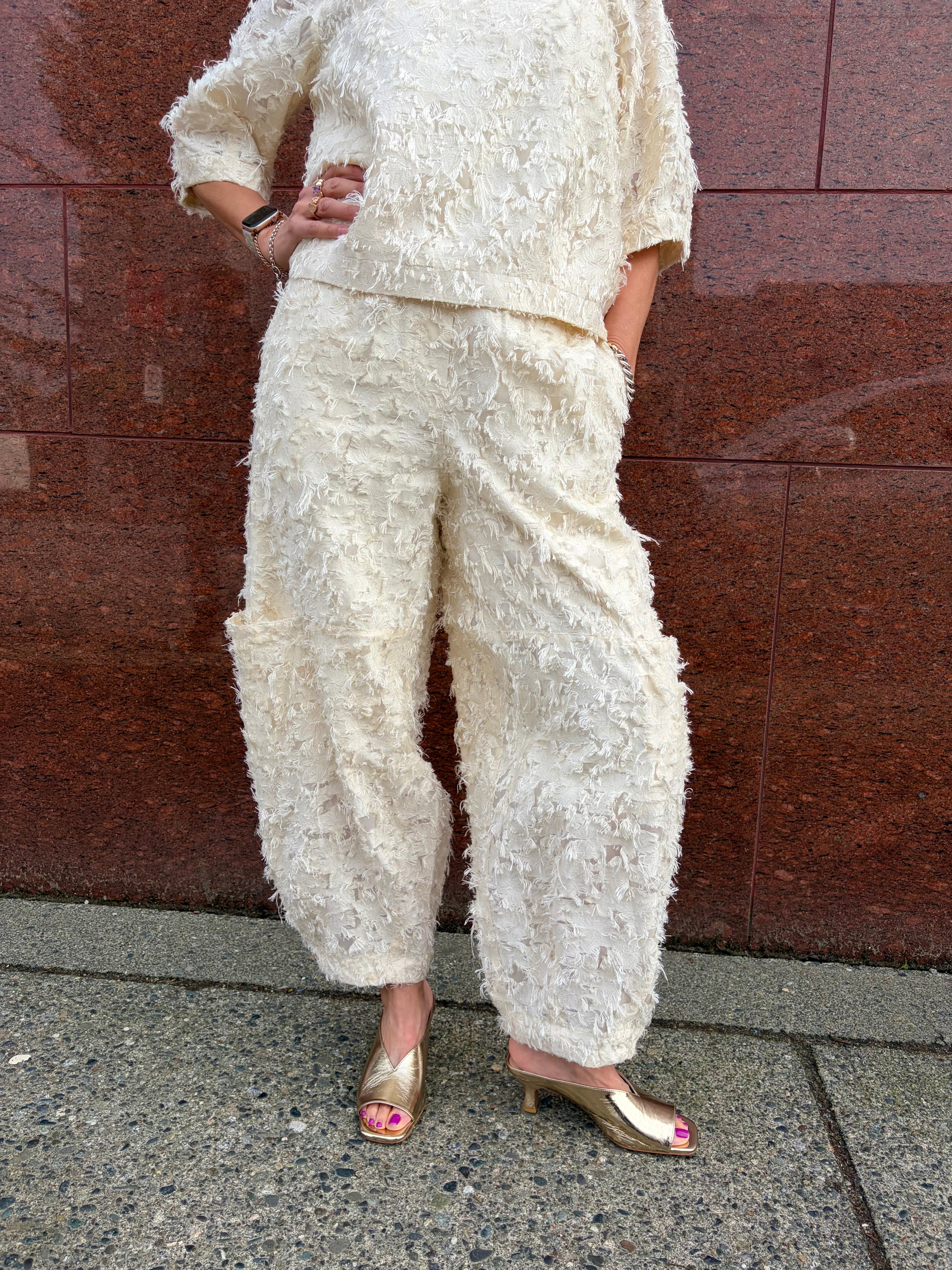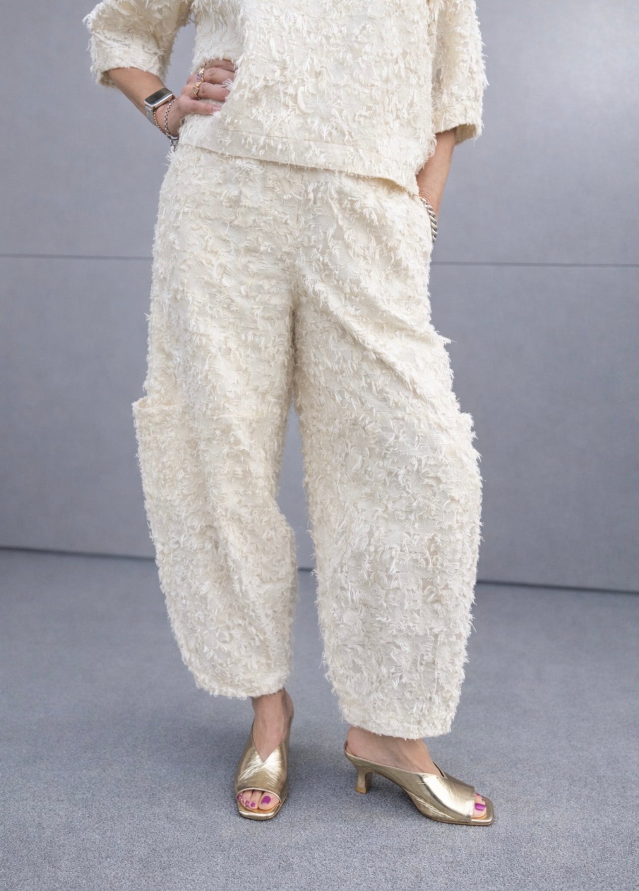 Get ready to dance like nobody's watching (because they won't, in these pants)! The 81456 Cream Lantern Trousers are your trusty travel buddies, with a loose fit and elastic waist that scream comfort. Textured details add a touch of pizzazz, making you party-ready—or beach-ready with flip flops. Packable perfection!