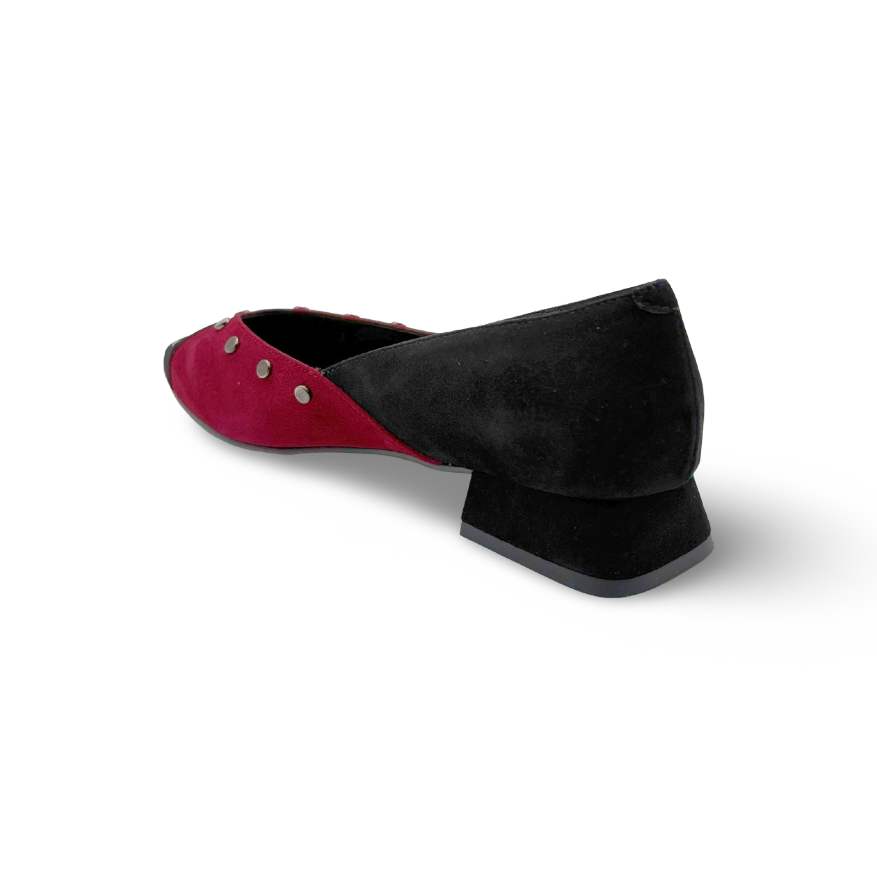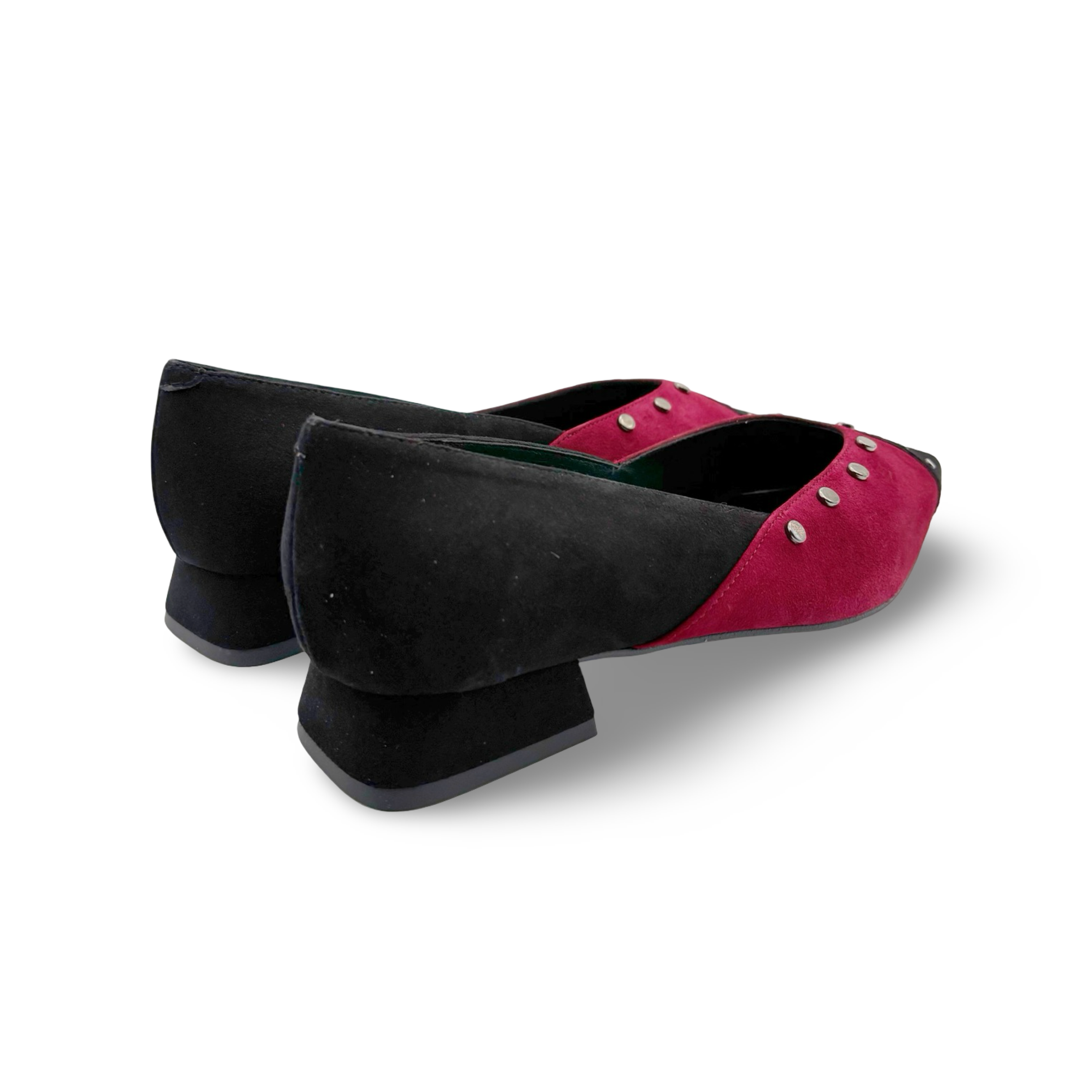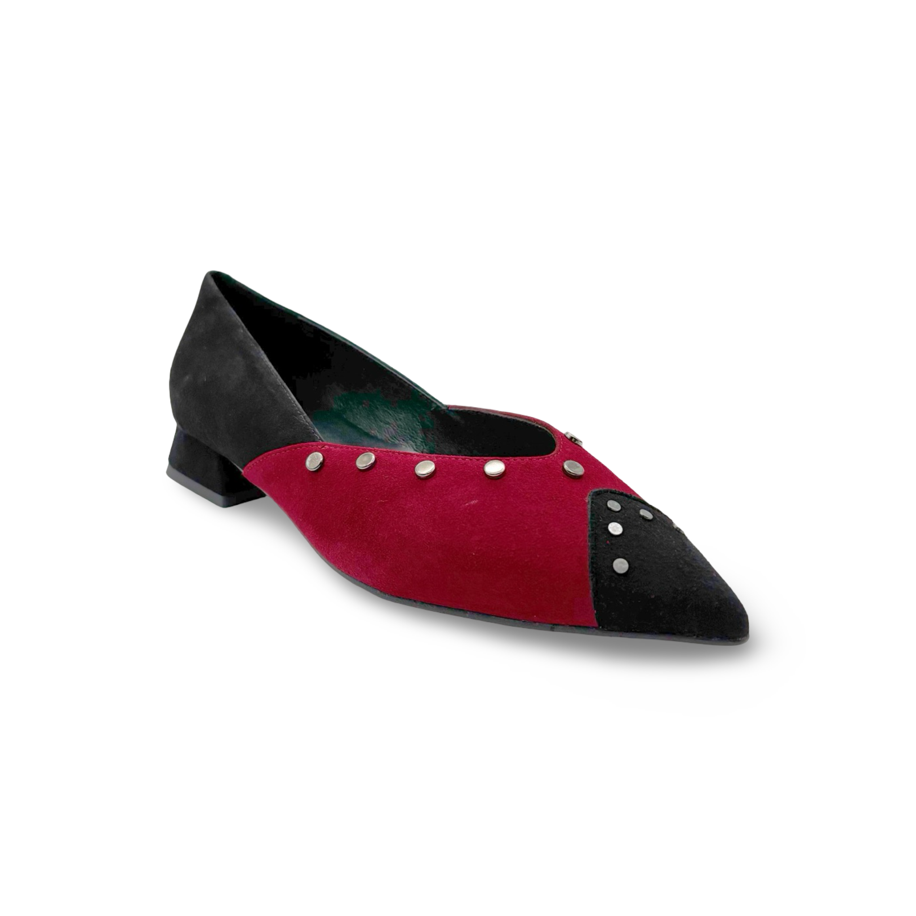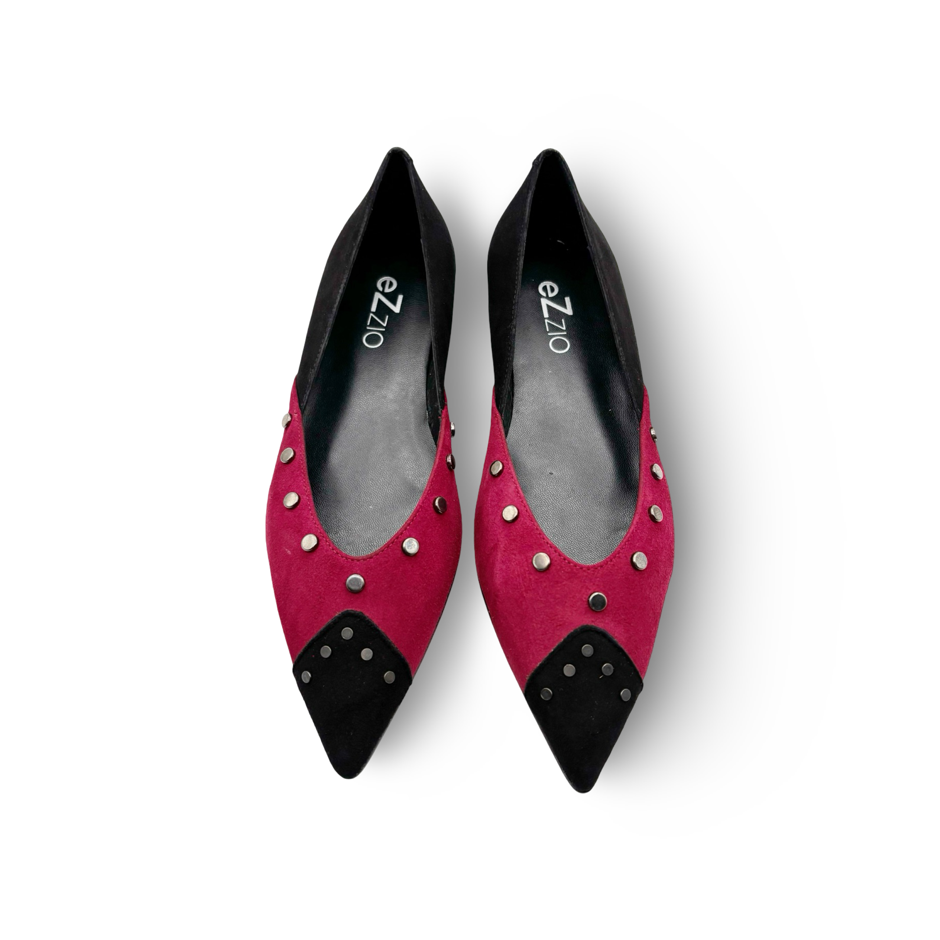 Step into timeless elegance with a contemporary twist. This multi-tone suede pointed-toe flat blends retro charm with modern comfort, featuring buttery-soft suede that molds to your foot for a luxurious feel. The studded details add just the right amount of edge, making it the perfect everyday shoe that works from brunch to evening plans. Versatile, chic, and undeniably stylish.