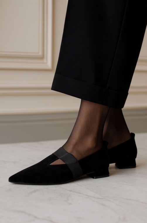 The ultimate style win: dress shoe elegance meets flat-shoe comfort. Handcrafted from premium leather, this black suede flat features a contemporary elastic detail that hugs your foot just right. Lightweight construction means you can go from morning meetings to evening plans without a second thought about your feet. Effortless sophistication that actually feels as good as it looks.
