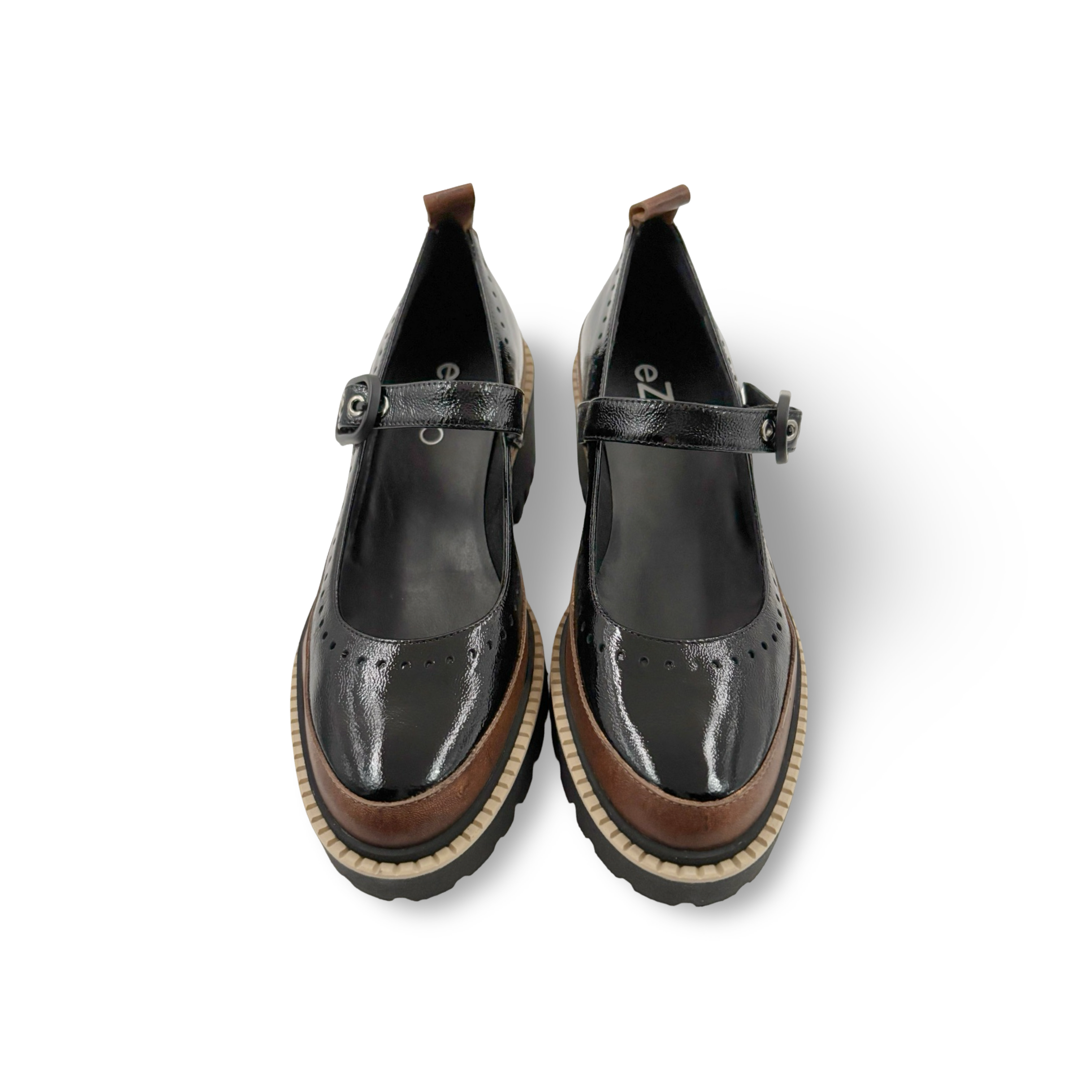 A young brand with a high commitment to fashion. eZzio is chosen by women, who give close attention to their outfits. This classic Mary-Jane has a modern vibe and shape and comes in a beautiful soft leather and low heel. There is detailing across the top of the vamp and the shoe is very light in weight.