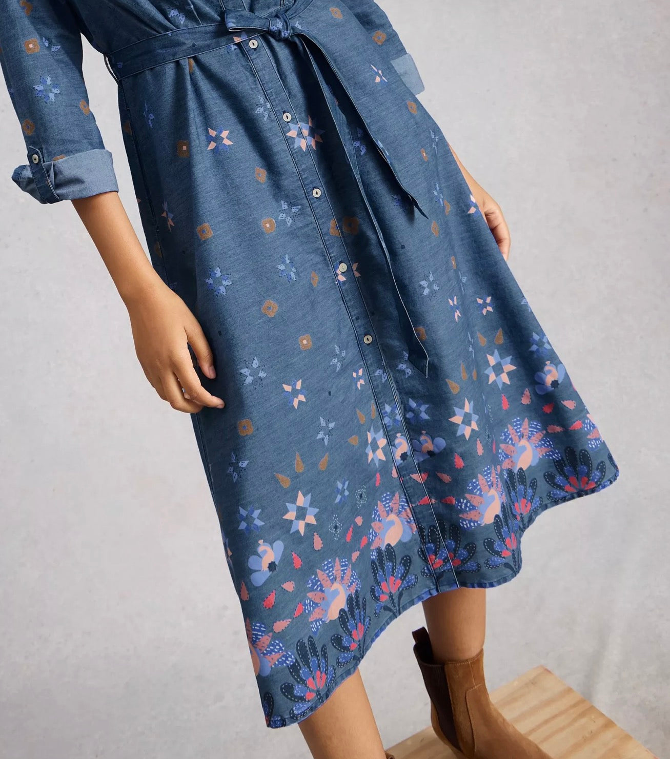 We've taken the midi dress and added something special. Like a collared neckline, cuffed sleeves, and a floral-like print. (Make that very special.)