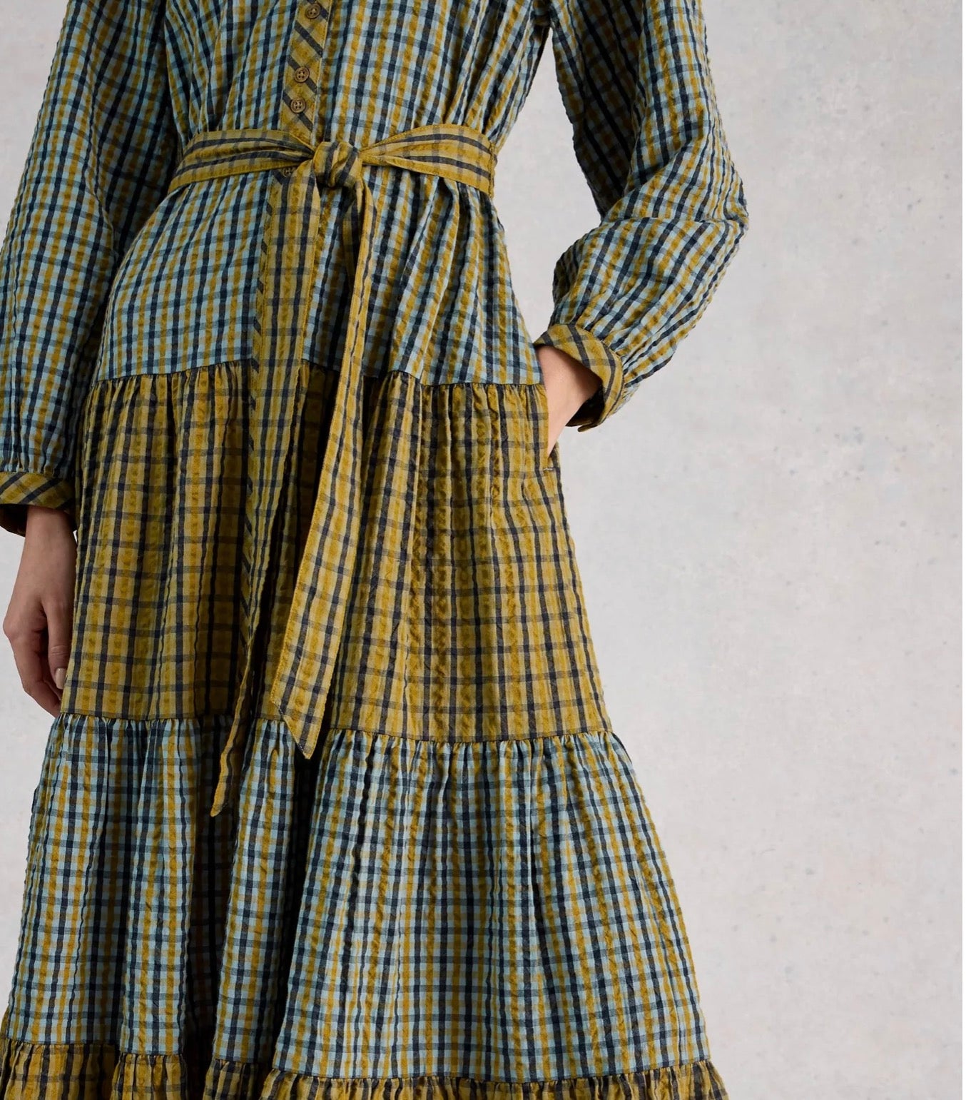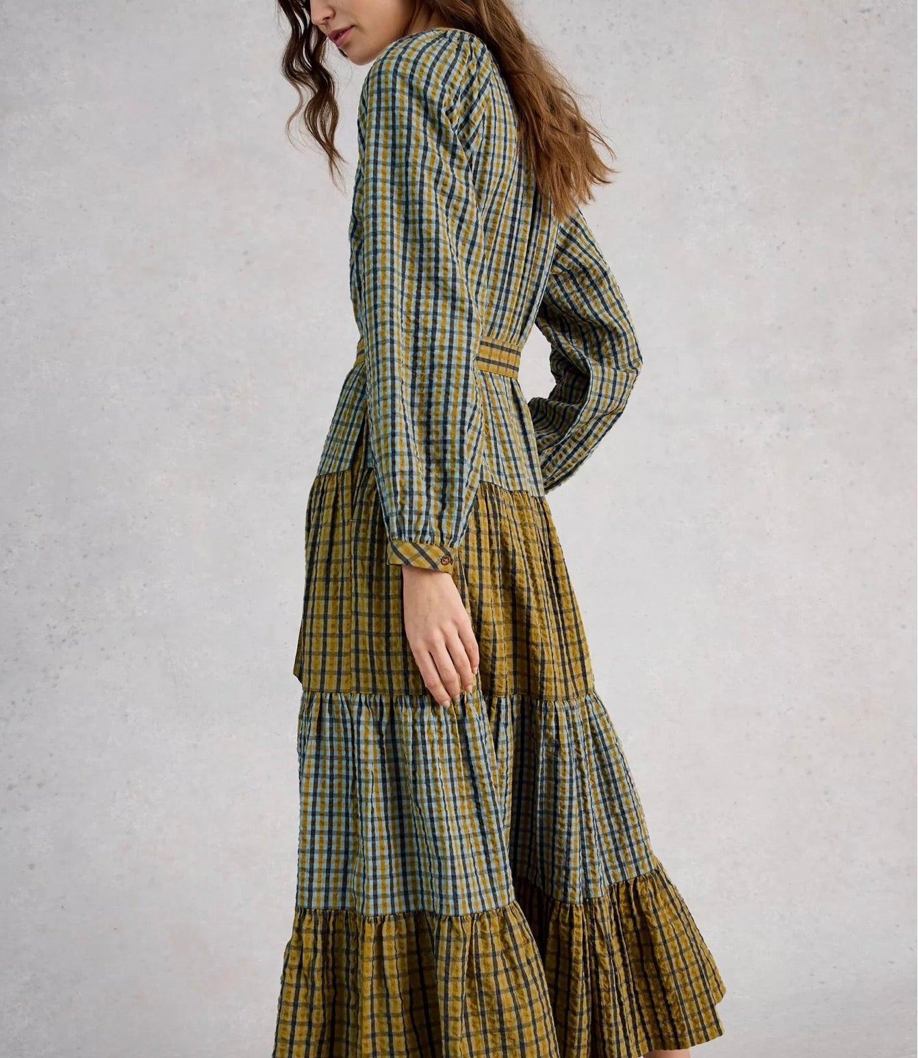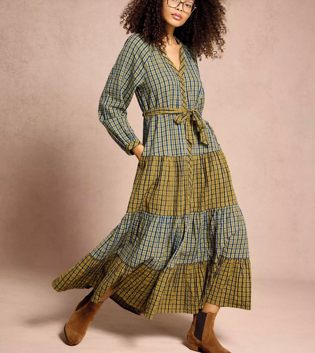 A tiered, tie-waist dress with colourblocking. And checks. (A great combination if you ask us.)