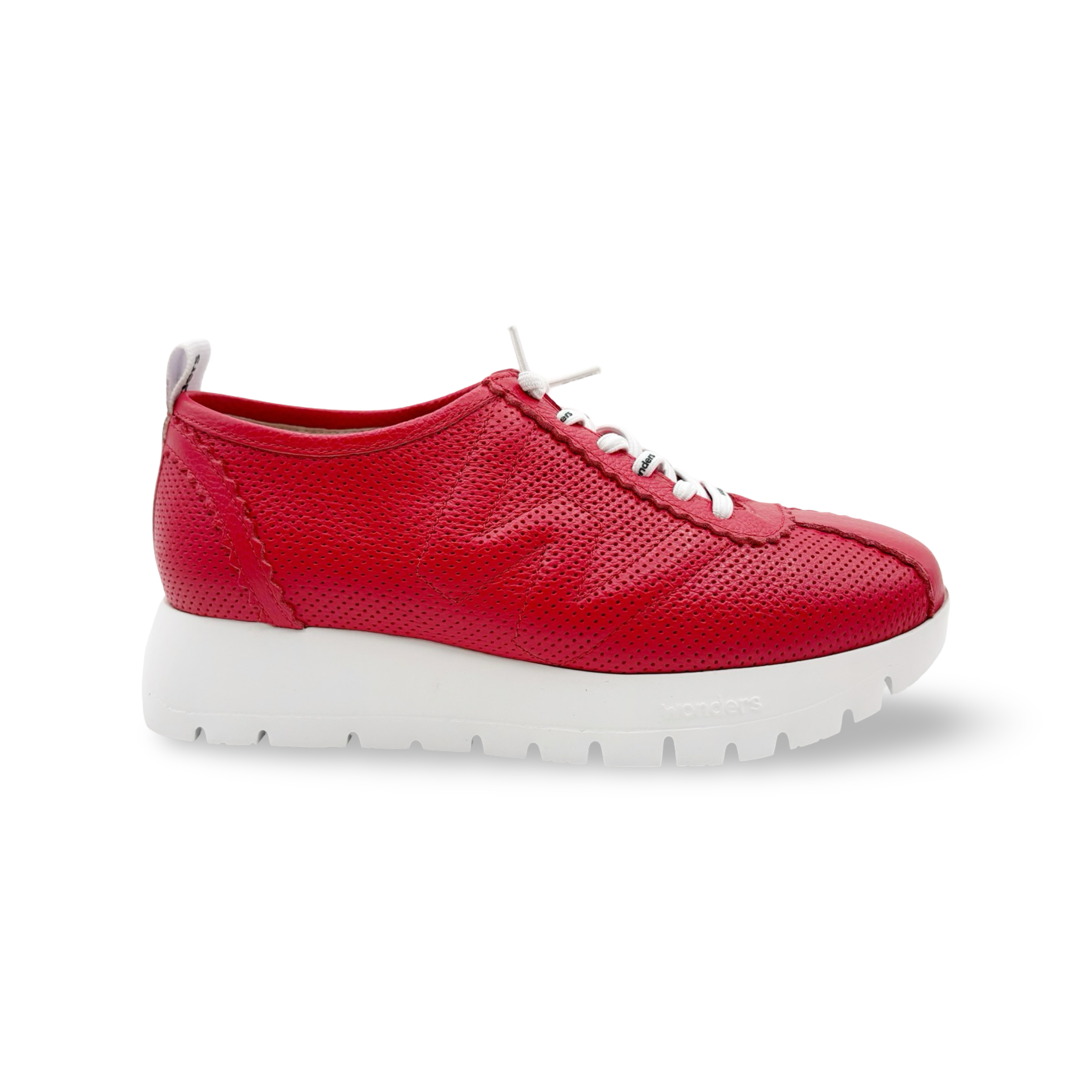 Elevate your style with a touch of red, making a statement in any setting. Urban and contemporary slip on sneakers with perforated leather details and stretch laces. Removable MemoryGel insole that softens your footprint. Its sole developed with WondersFly ™ technology, brings extreme lightness and comfort to the model. Get ready for the feeling, YES WE FLY!