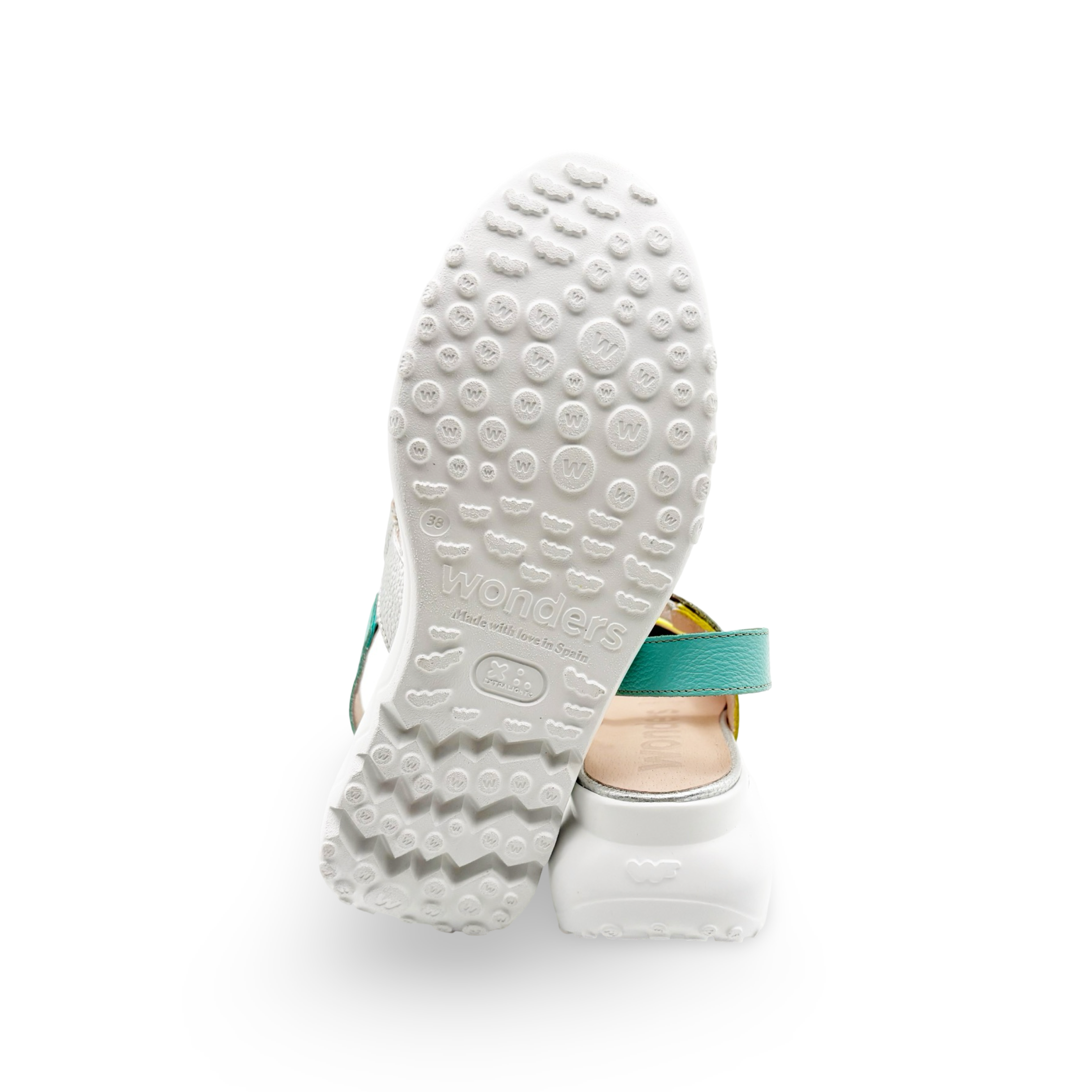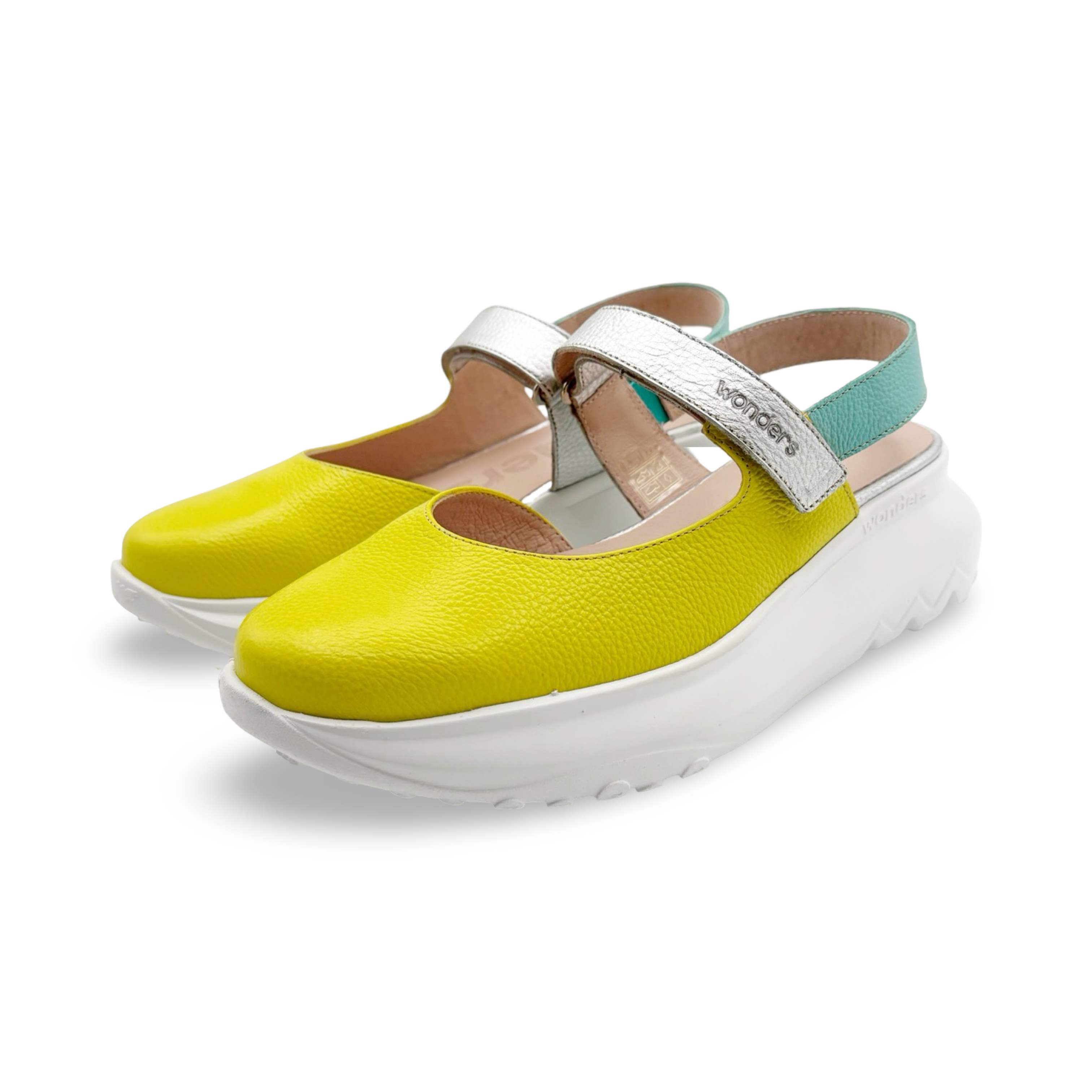 This fun multicolor sandal features a closed-toe design and an adjustable cross strap for a secure, just-right fit. Crafted from leather and set on a comfortable 1.7" wedge sole, it blends playful style with everyday wearability.