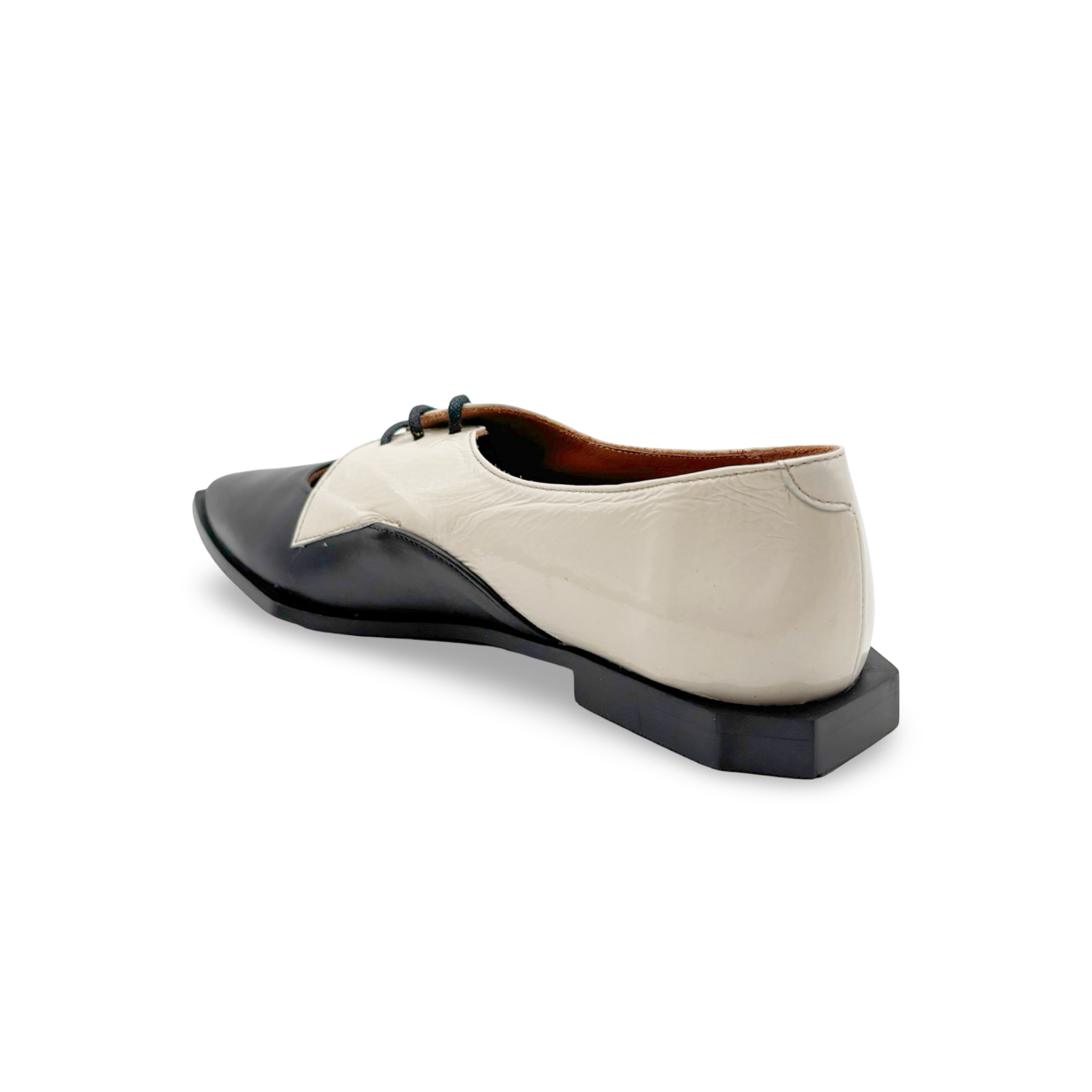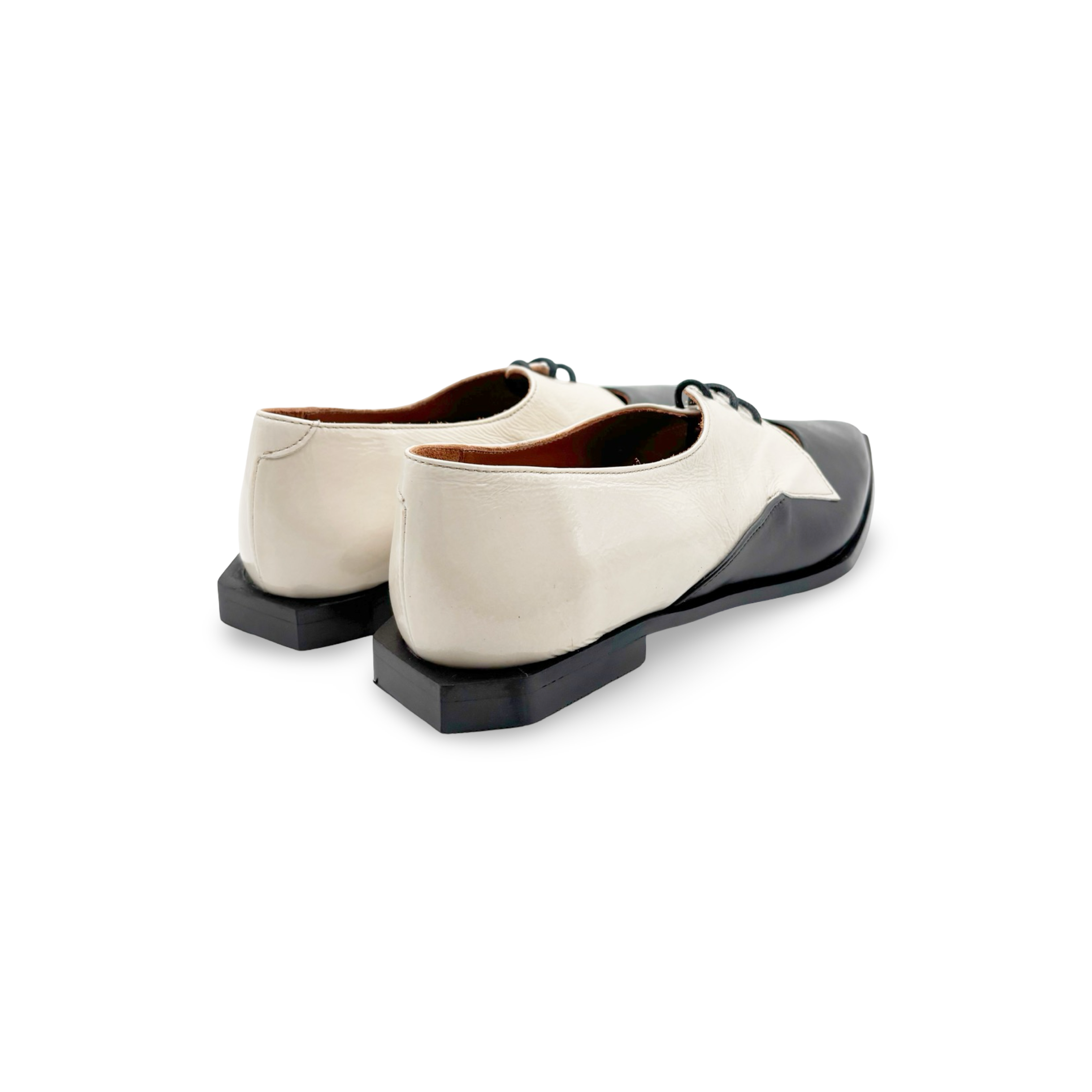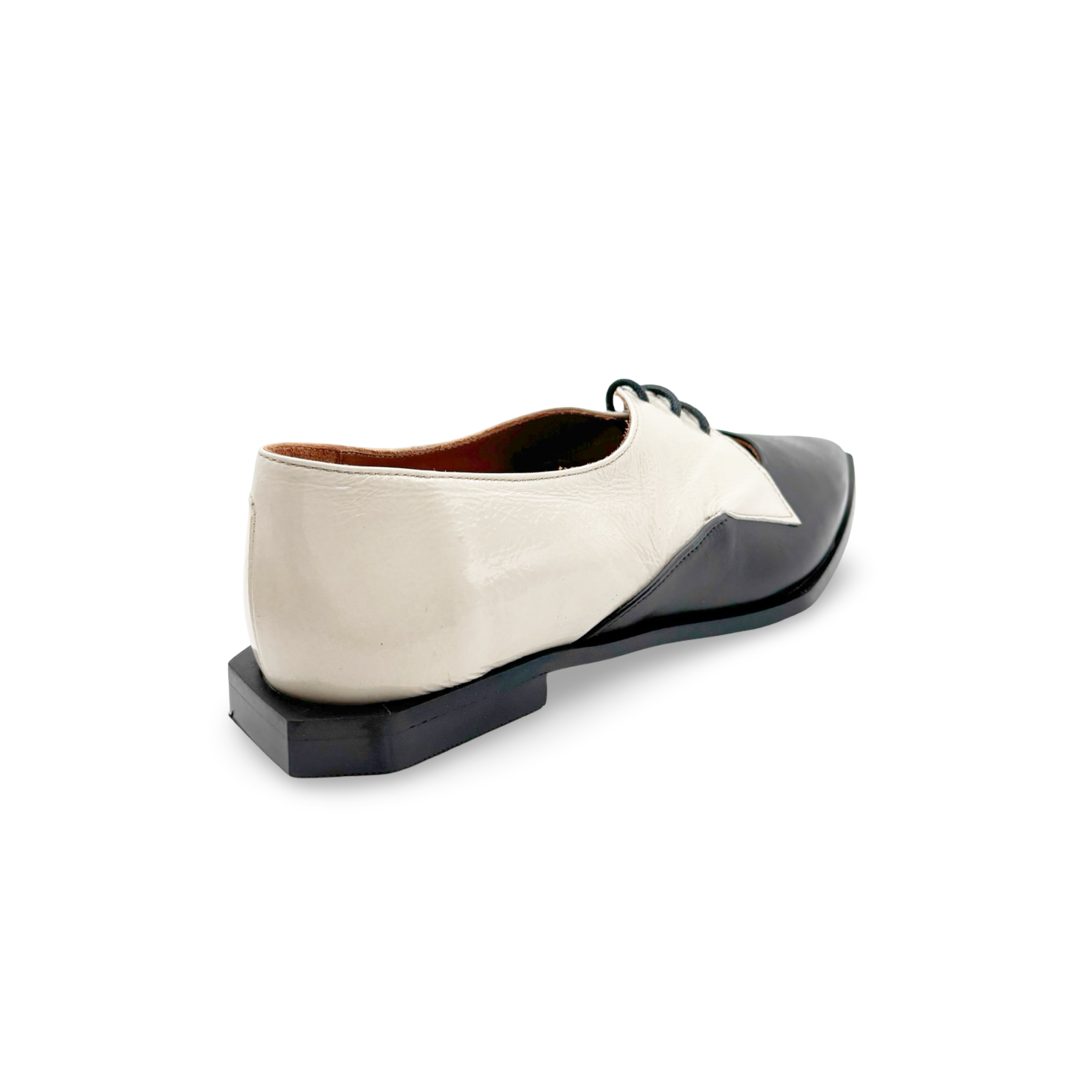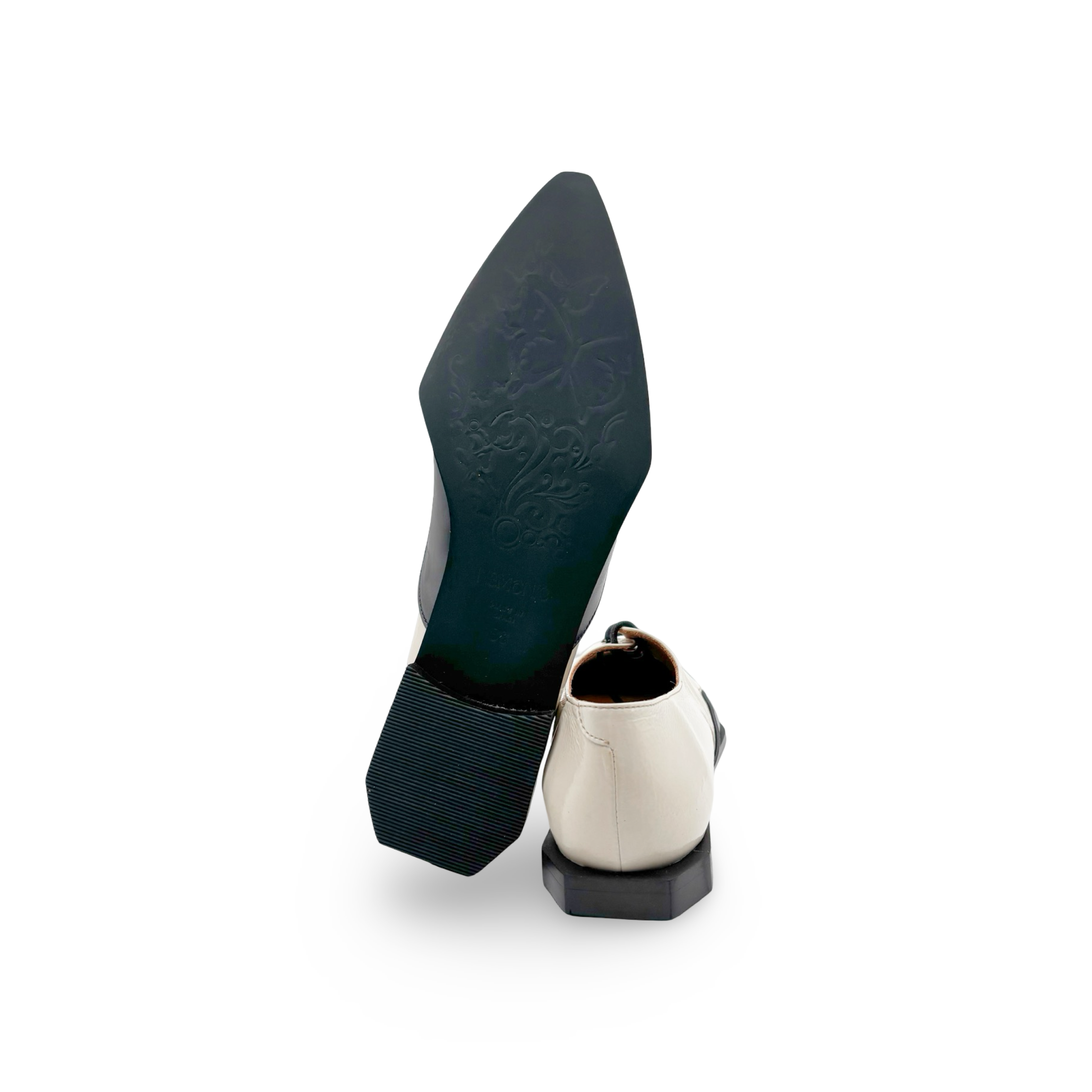 Step into pure sophistication with this striking black and white pointed-toe lace-up loafer, crafted in Spain for uncompromising quality. The killer fit hugs your foot just right, while the dramatic metallic accents add instant edge to any outfit. Pair with wide-leg trousers for effortless polish, or dress them down for a fun twist on everyday style. These aren't just shoes—they're a confidence boost you'll actually want to wear.