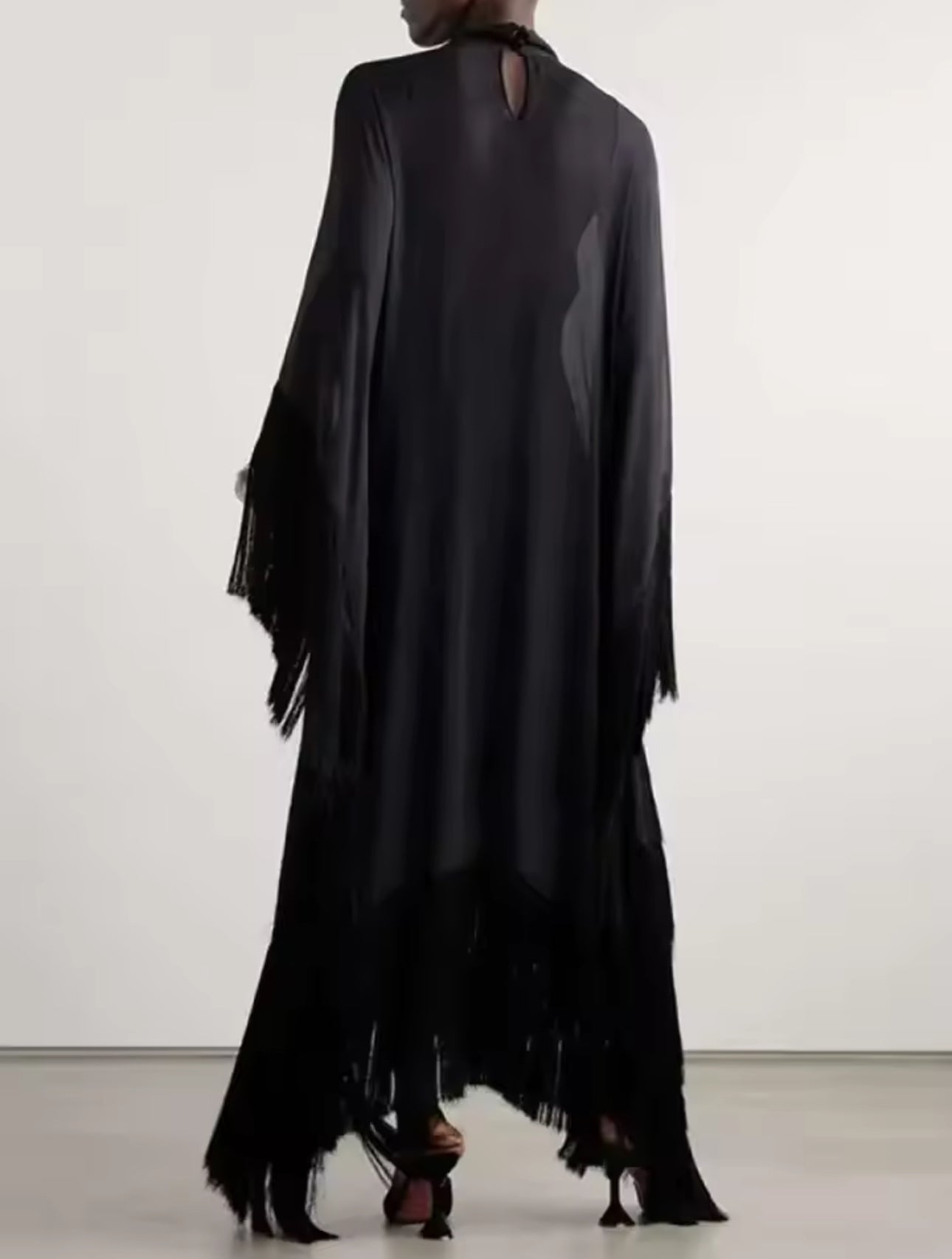 Introducing our BlackFringe Kaftan Dress, perfect for the daring and adventurous fashionista! Made with high-quality materials, this dress will turn heads with its playful fringe detailing and bold pink color. Take risks and stand out in this unique and stylish piece. Whether you're hitting the town or lounging on the beach, this kaftan dress will give you the confidence to embrace your bold and adventurous side. Don't settle for ordinary, make a statement in our Pink Fringe Kaftan Dress!