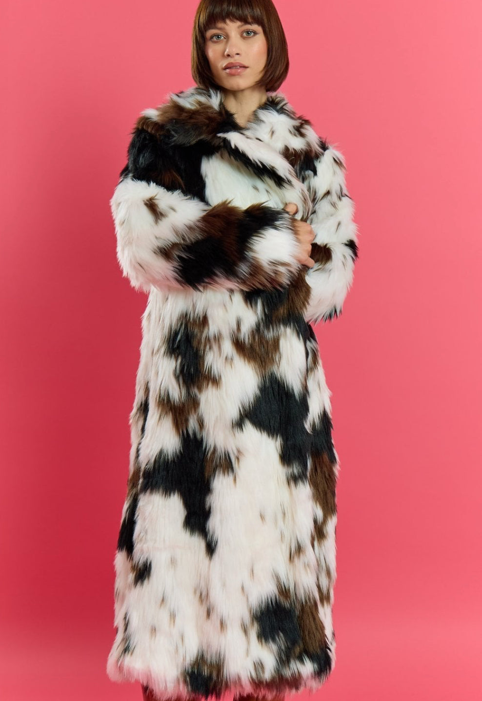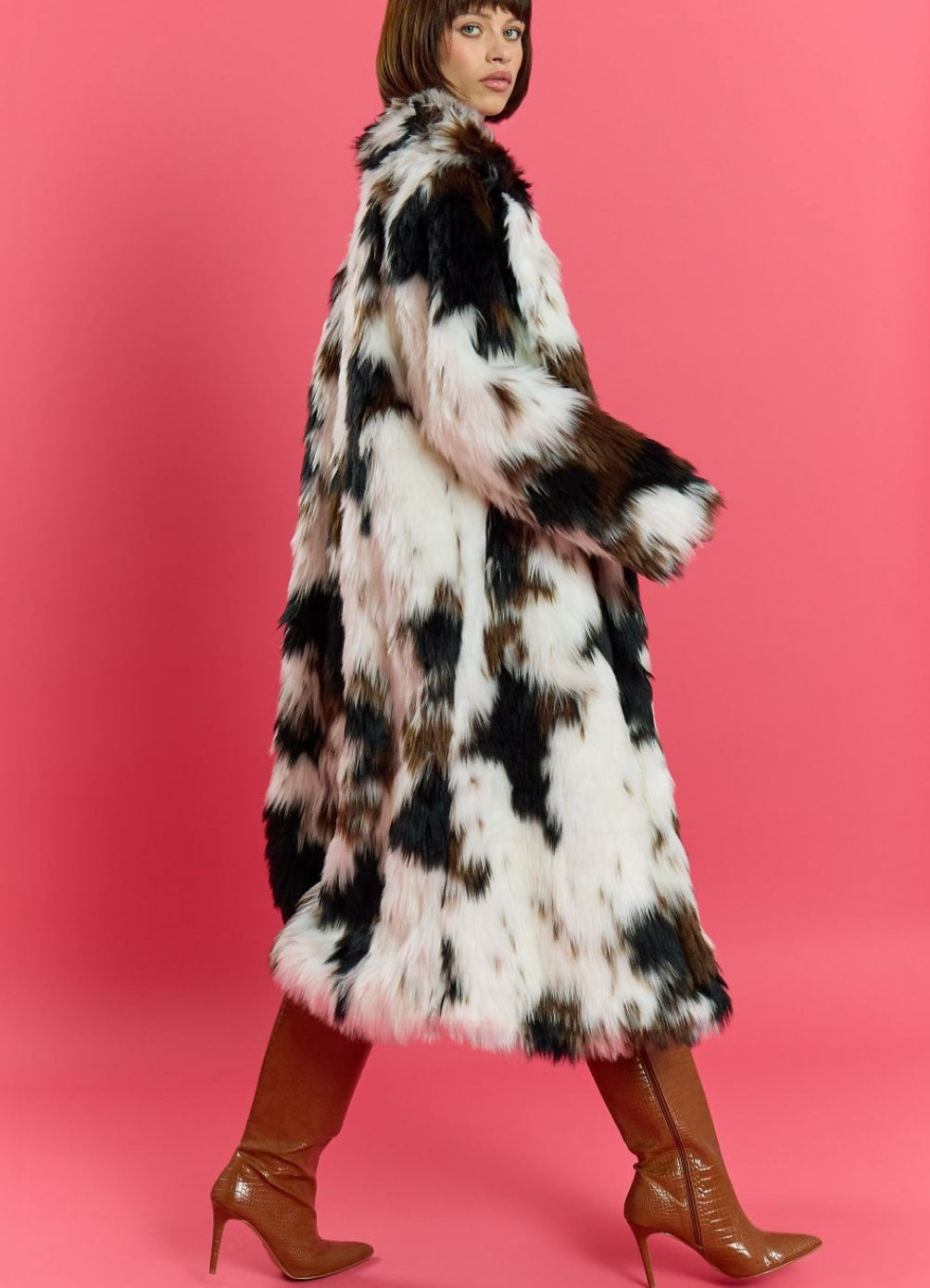 Hand-Painted Faux Fur Midi Coat – Sustainable Luxury