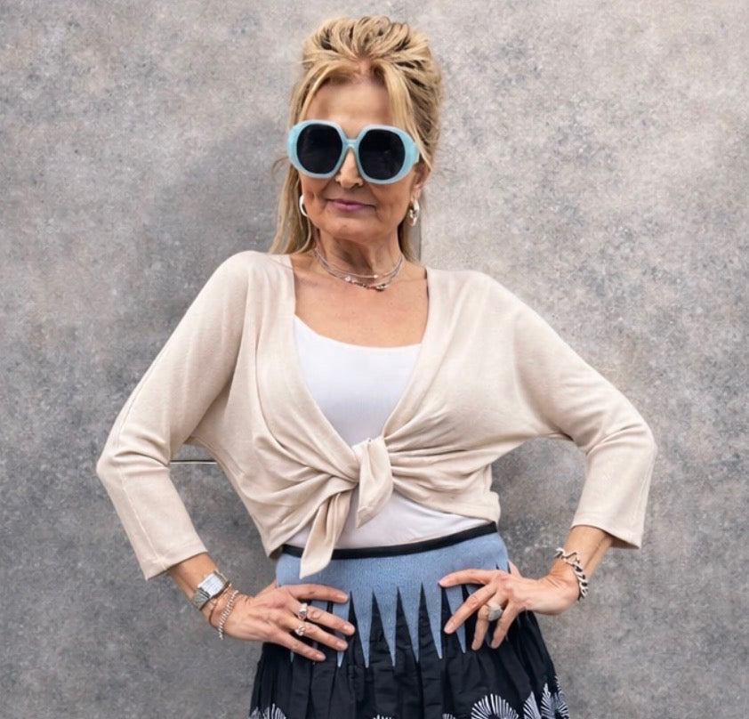 Style meets comfort: our bolero jacket HOLLYWOOD combines both! Made of soft fine knit and with an overlapped 3/4 sleeves, it sits comfortably casually. Whether loosely open or tied at the waist, the jacket adapts to your look. It is ideal for our dresses and jumpsuits.