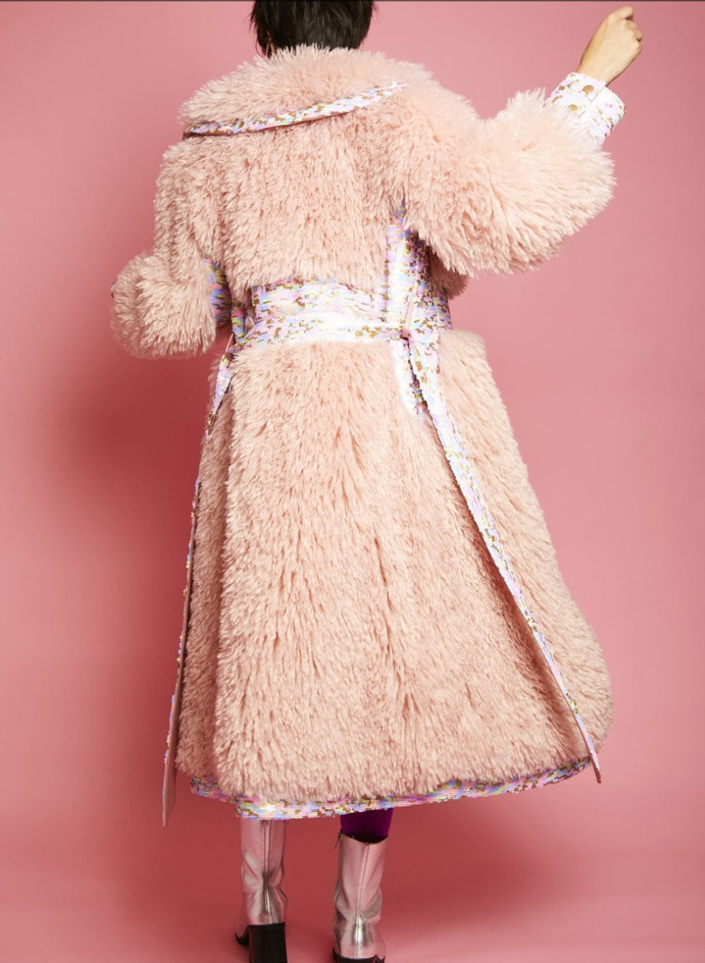 A statement will be made when wearing our gorgeous hand-knitted bamboo coat with leather cuff and panel details featuring, super soft faux Mongolian fur, faux leather accents, side pockets, belted waist, fully lined, and is a maxi length!